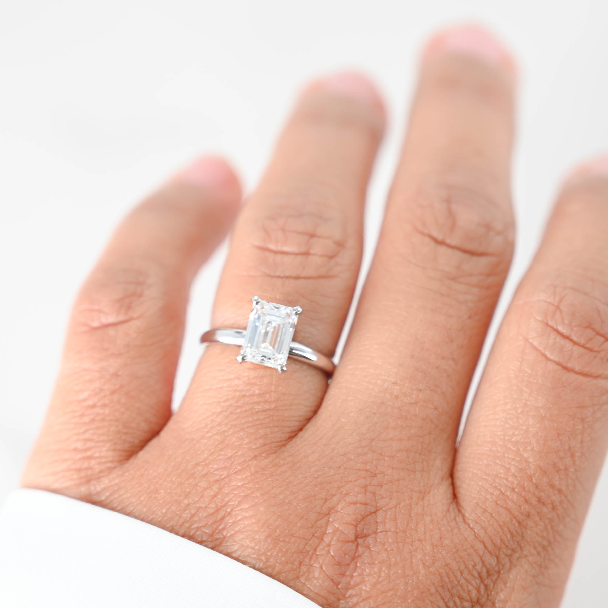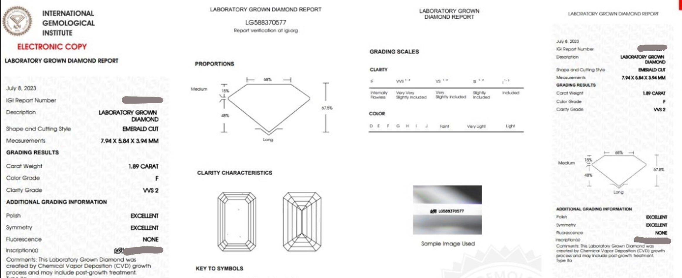 This elegant 18K white gold engagement ring features a brilliant princess-cut lab diamond, totaling 1.89 carats. The ring's timeless design is paired with a digital IGM certificate for the lab diamond, ensuring its authenticity and quality. A perfect choice for a modern, ethical engagement.