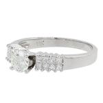 18k White Gold Round Brilliant Diamond Princess Cut Accents Engagement Ring