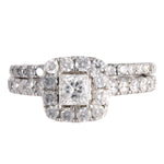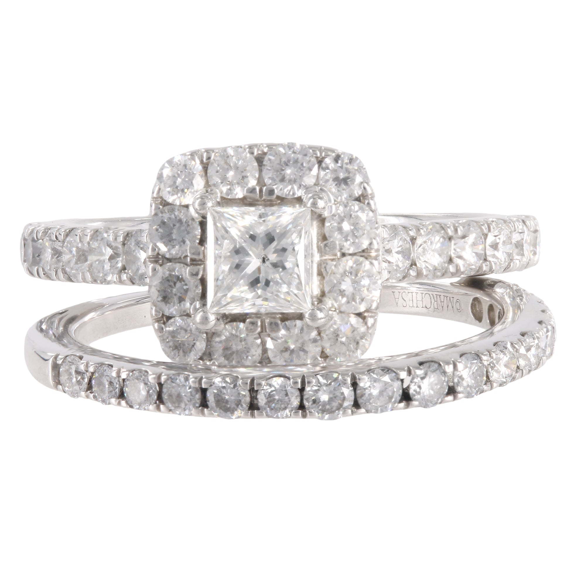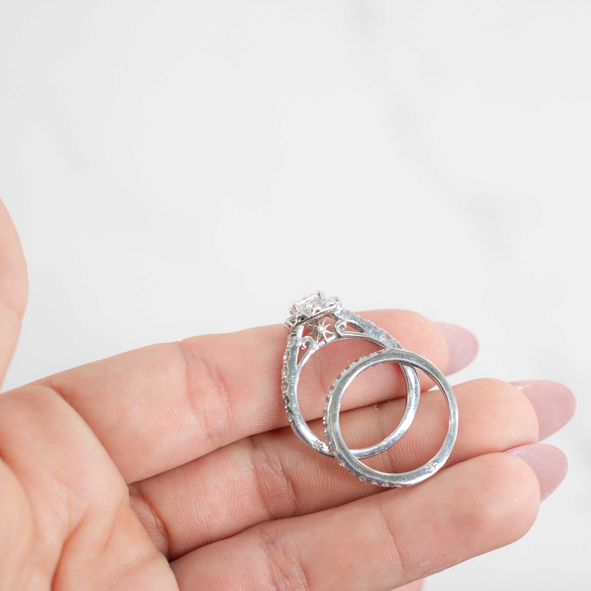 18k White Gold Wedding Set Diamond Engagement Ring with Matching Diamond Wedding Band