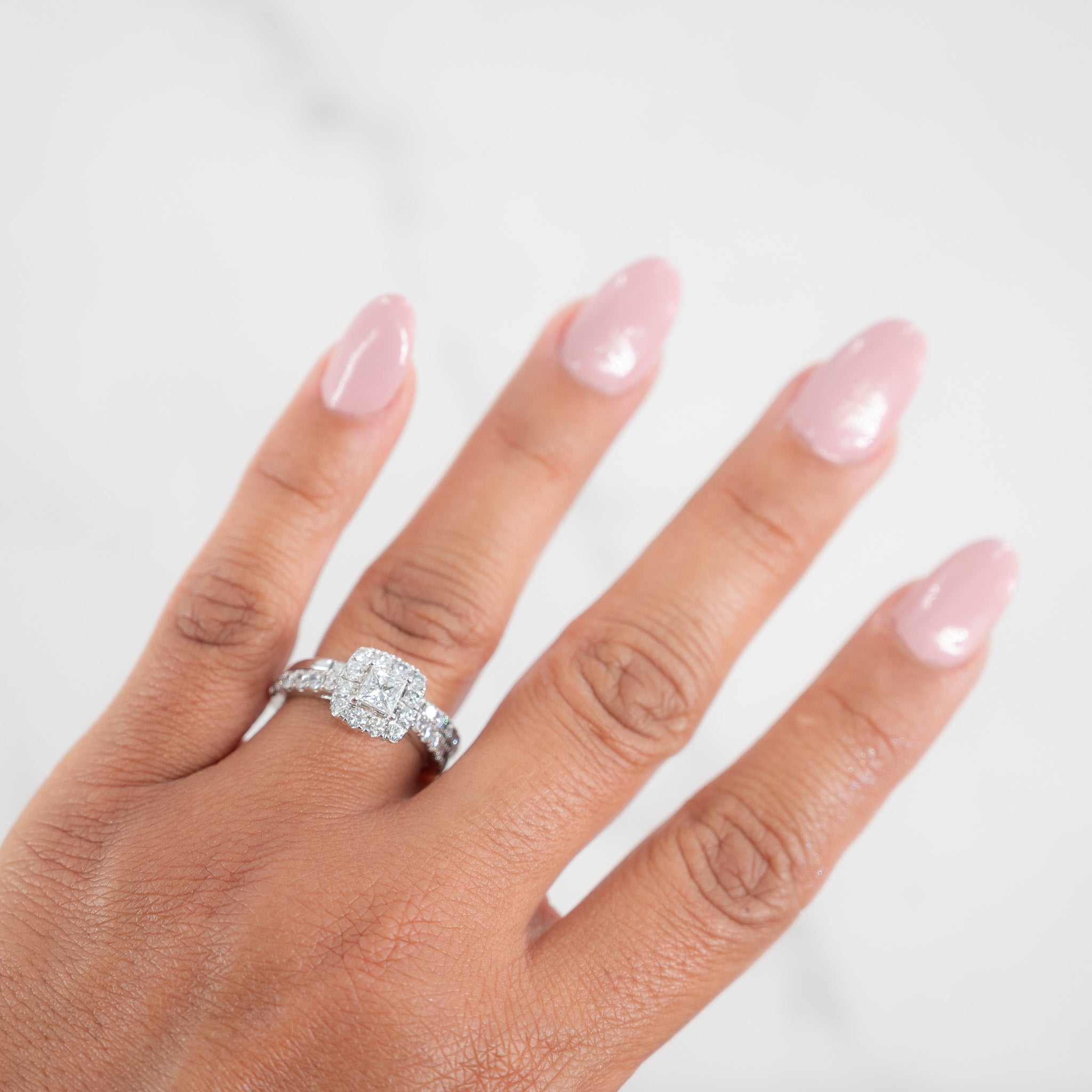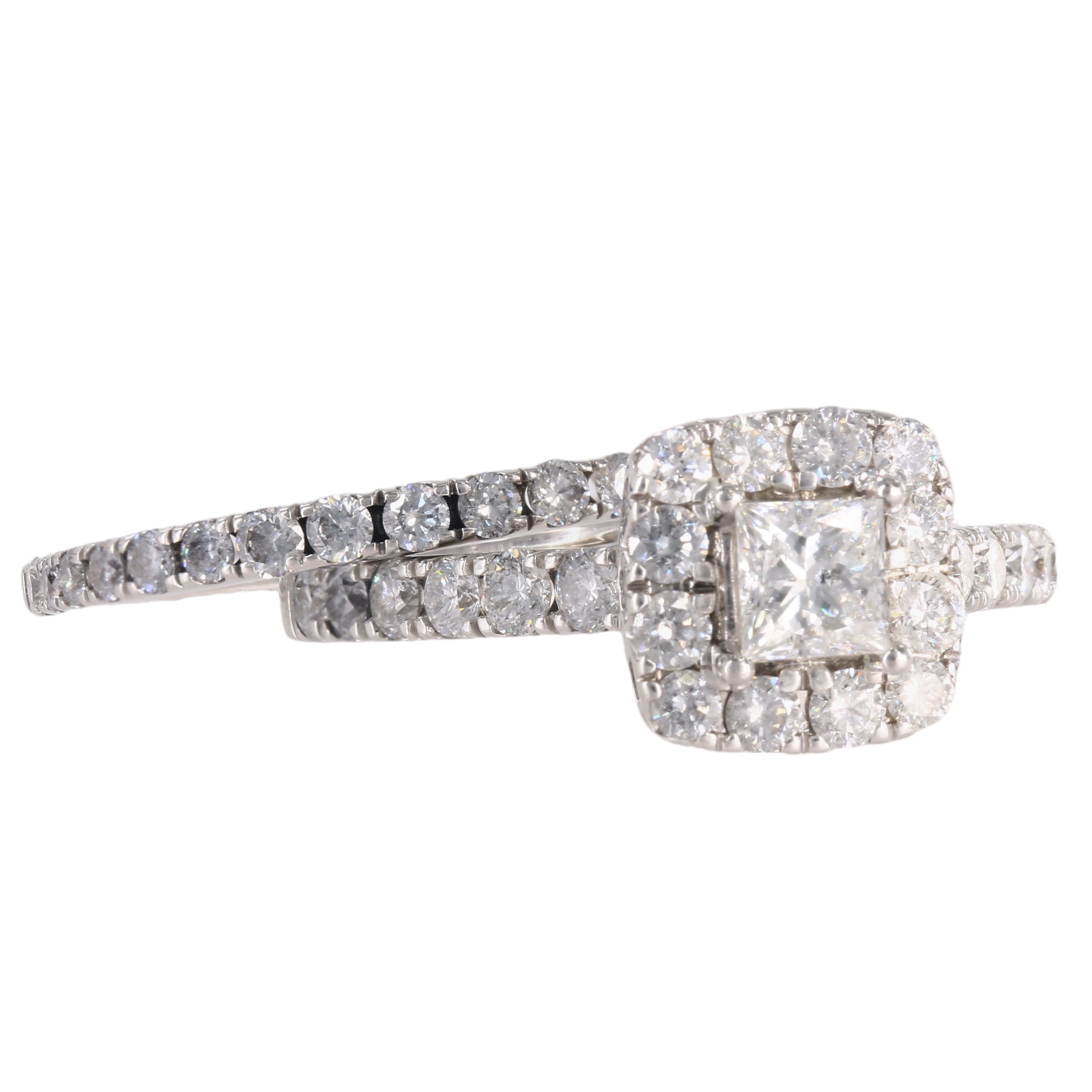 18k White Gold Wedding Set Diamond Engagement Ring with Matching Diamond Wedding Band. 42 Diamonds Total Carat: 1.78CTW