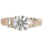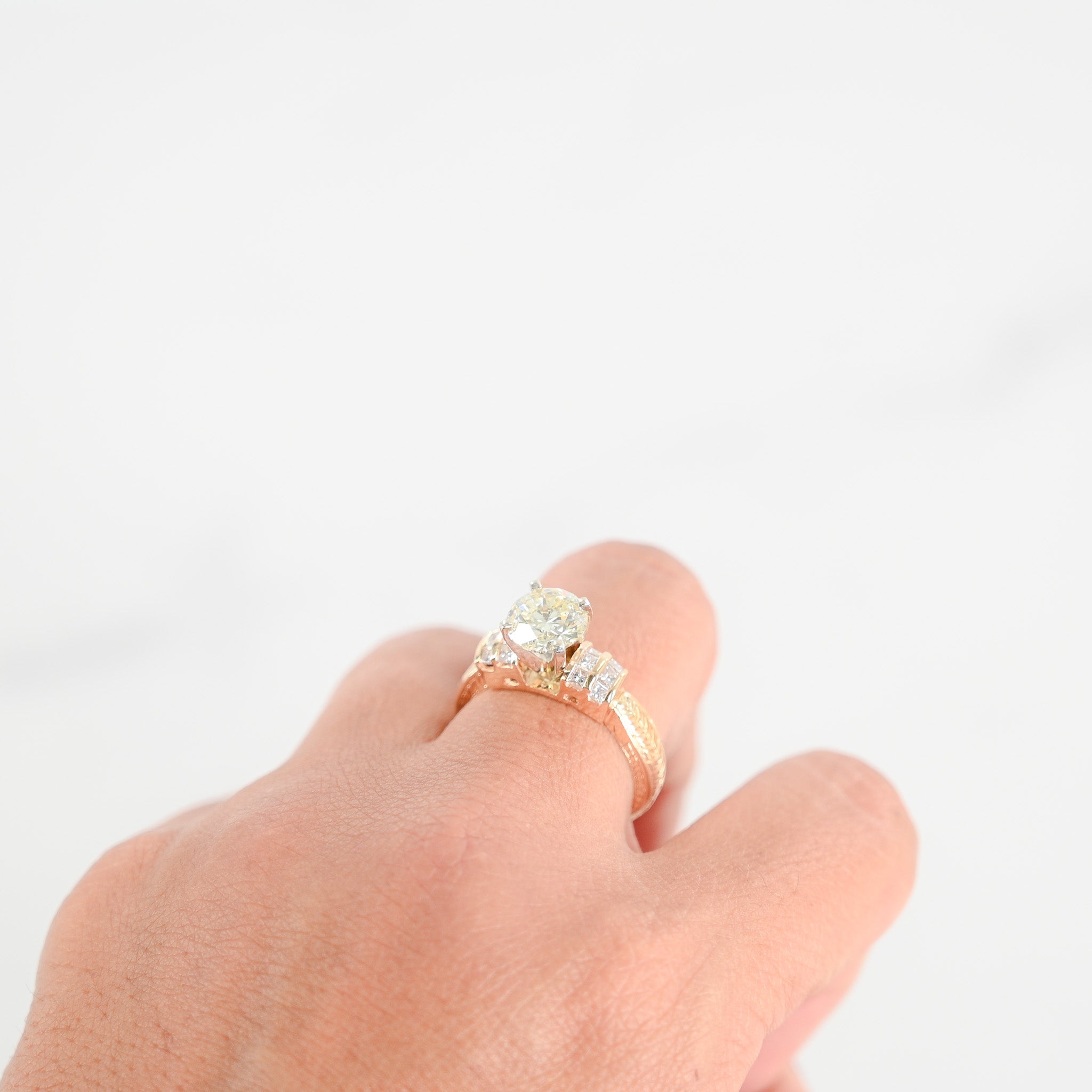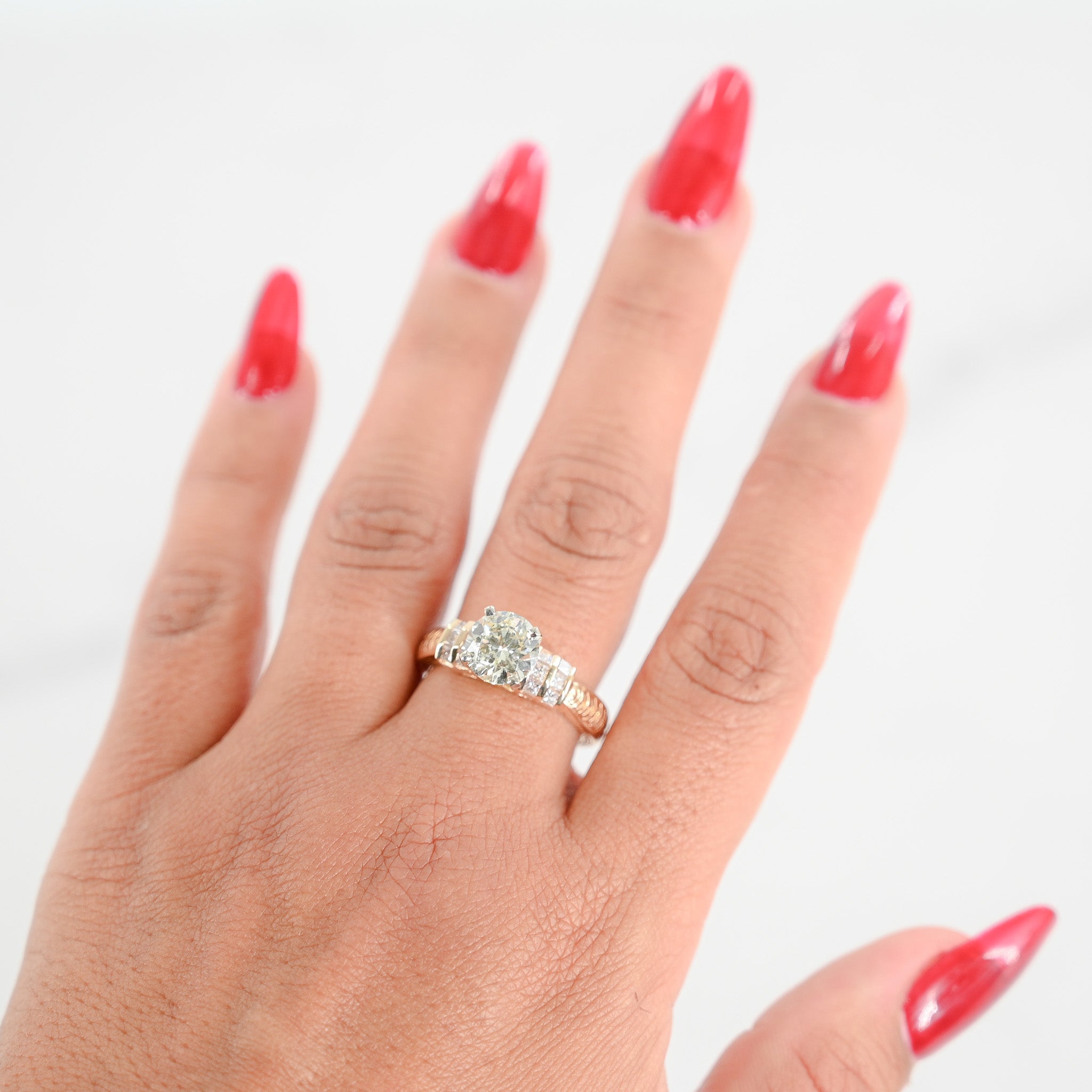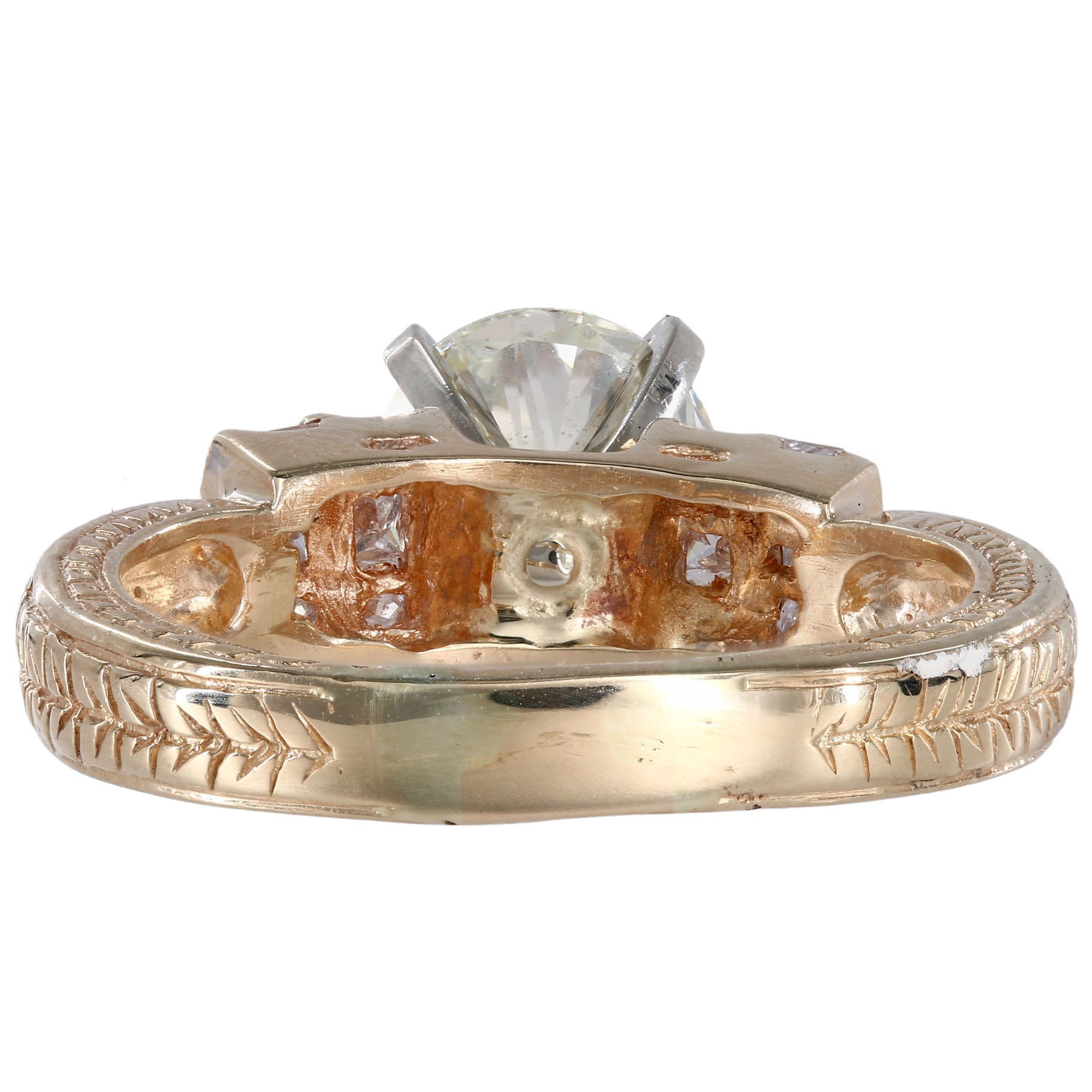 18K Yellow Gold Big Solitaire Diamond With Accents Sides Engagement Ring