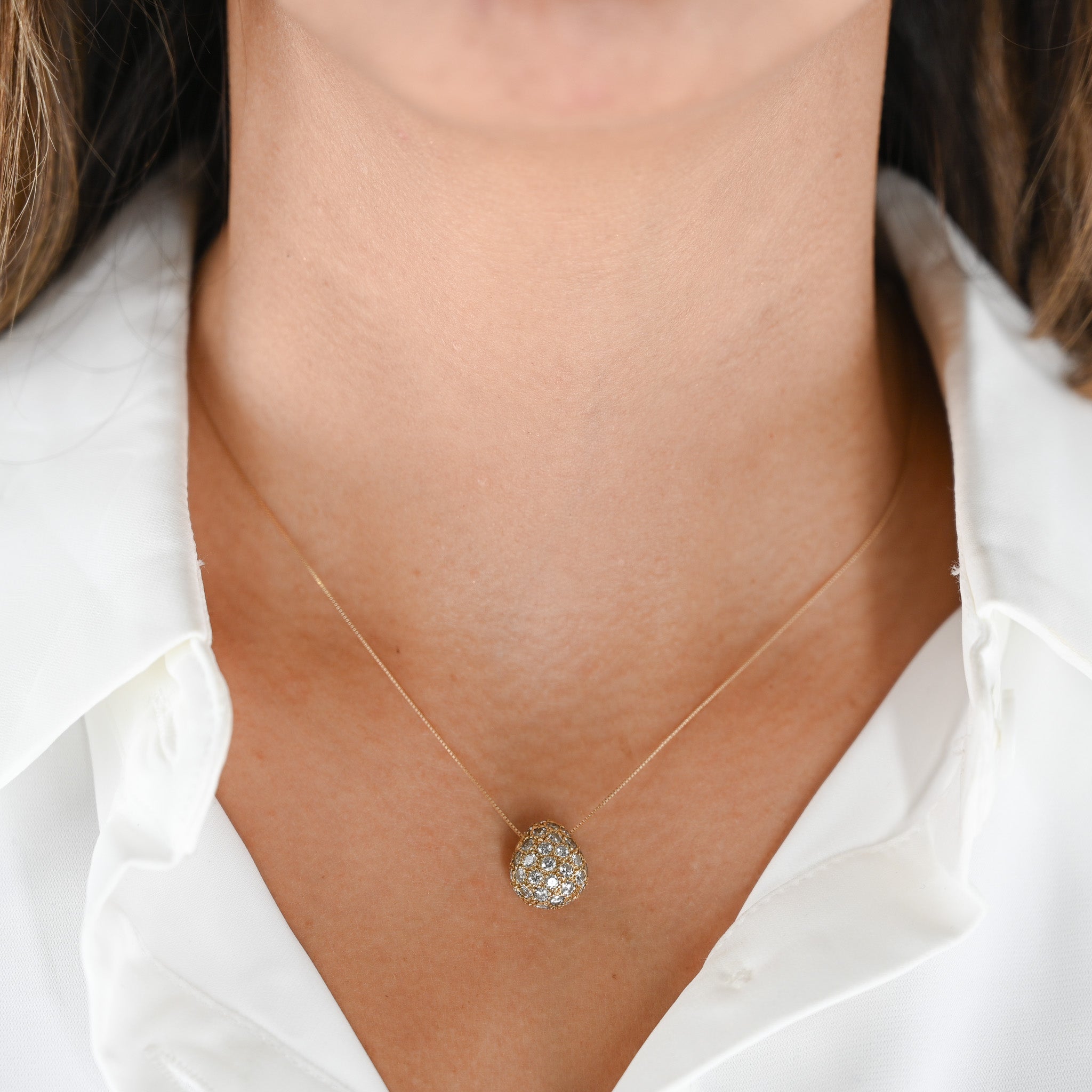 This intricately crafted piece, adorned with dazzling diamonds, exudes timeless elegance. Perfect for pairing with your favorite chain, it adds a touch of brilliance and sophistication to any ensemble.
