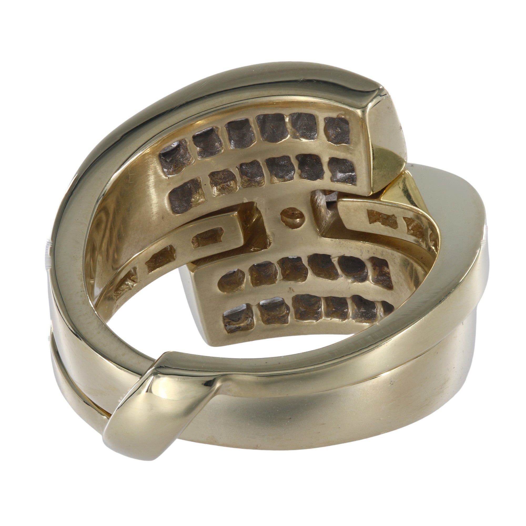 Indulge in the lavish allure of this 18k Yellow Gold Solitaire with Channel Set Princess Cut Cocktail Ring. Its bold design features a 1.1ct round brilliant-cut diamond at the center, complemented by 40 princess-cut diamonds along the band. With a total carat weight of 2.78ctw, this ring exudes sophistication and luxury.