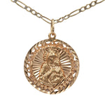 Elevate your spiritual style with the divine elegance of the 18k Yellow Gold Virgin Mary Pendant. This medallion-style pendant, with a diameter of 25mm, exudes a sacred charm. The inclusion of a bale brings the total length to 33.75mm, providing a harmonious balance. Crafted from radiant yellow gold of 18k purity, this pendant weighs 5.1g, making it a substantial yet graceful accessory. The Virgin Mary design adds a touch of reverence, making this pendant a symbol of faith and fashion seamlessly intertwined. Wear it close to your heart as a testament to both your spirituality and sophisticated taste.