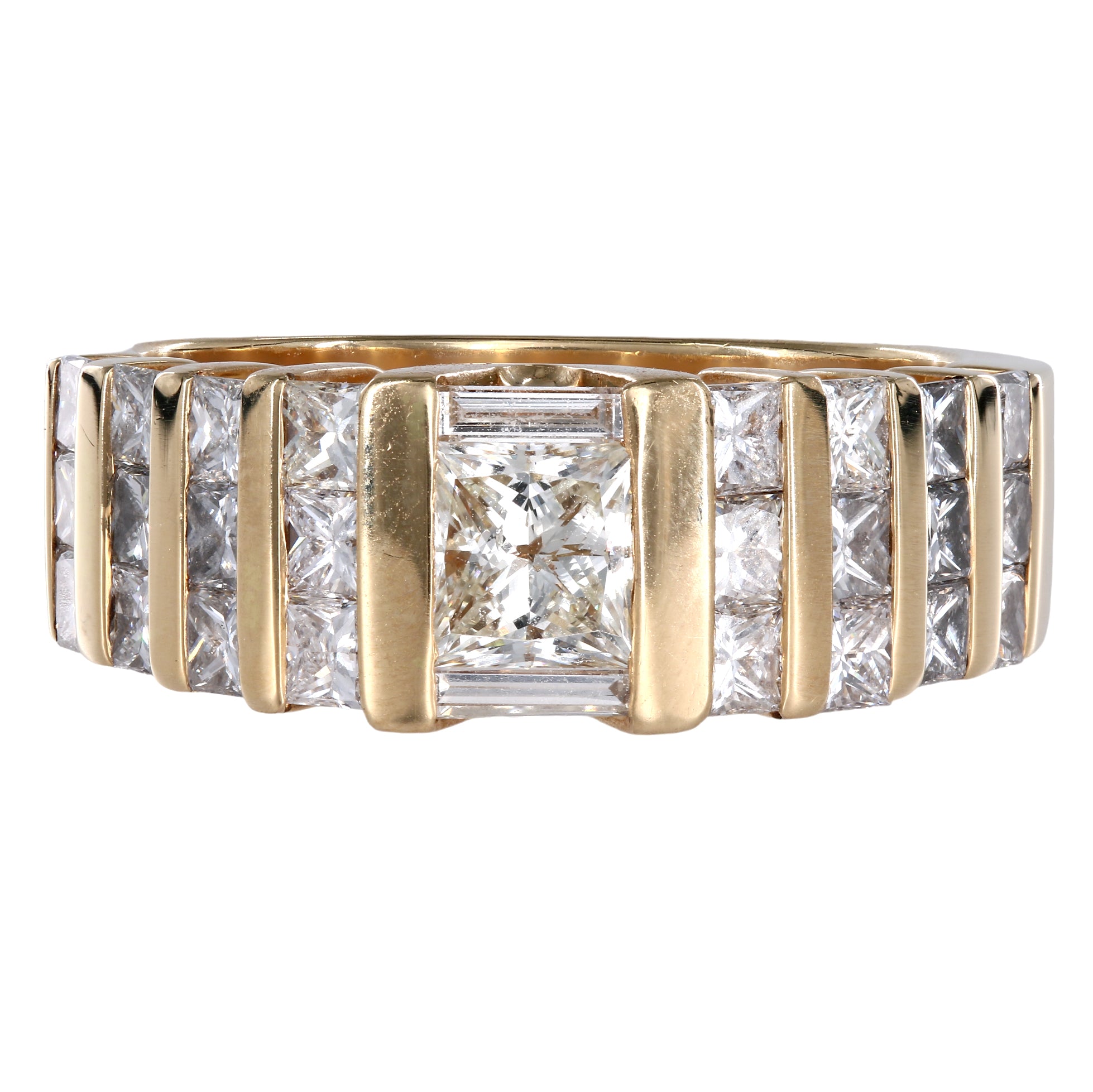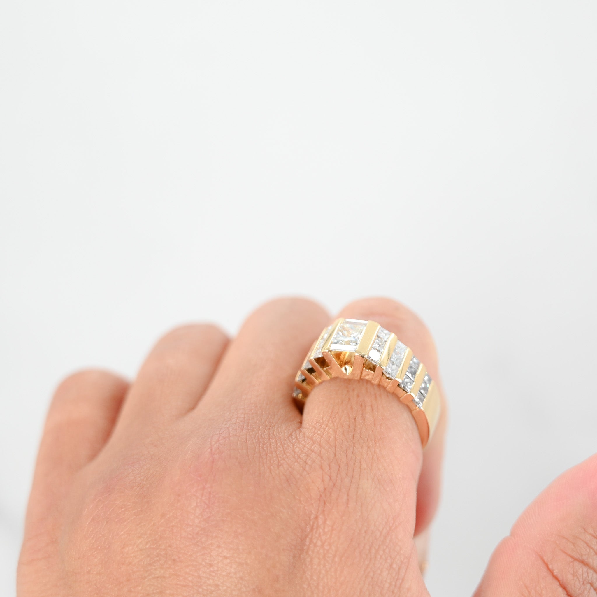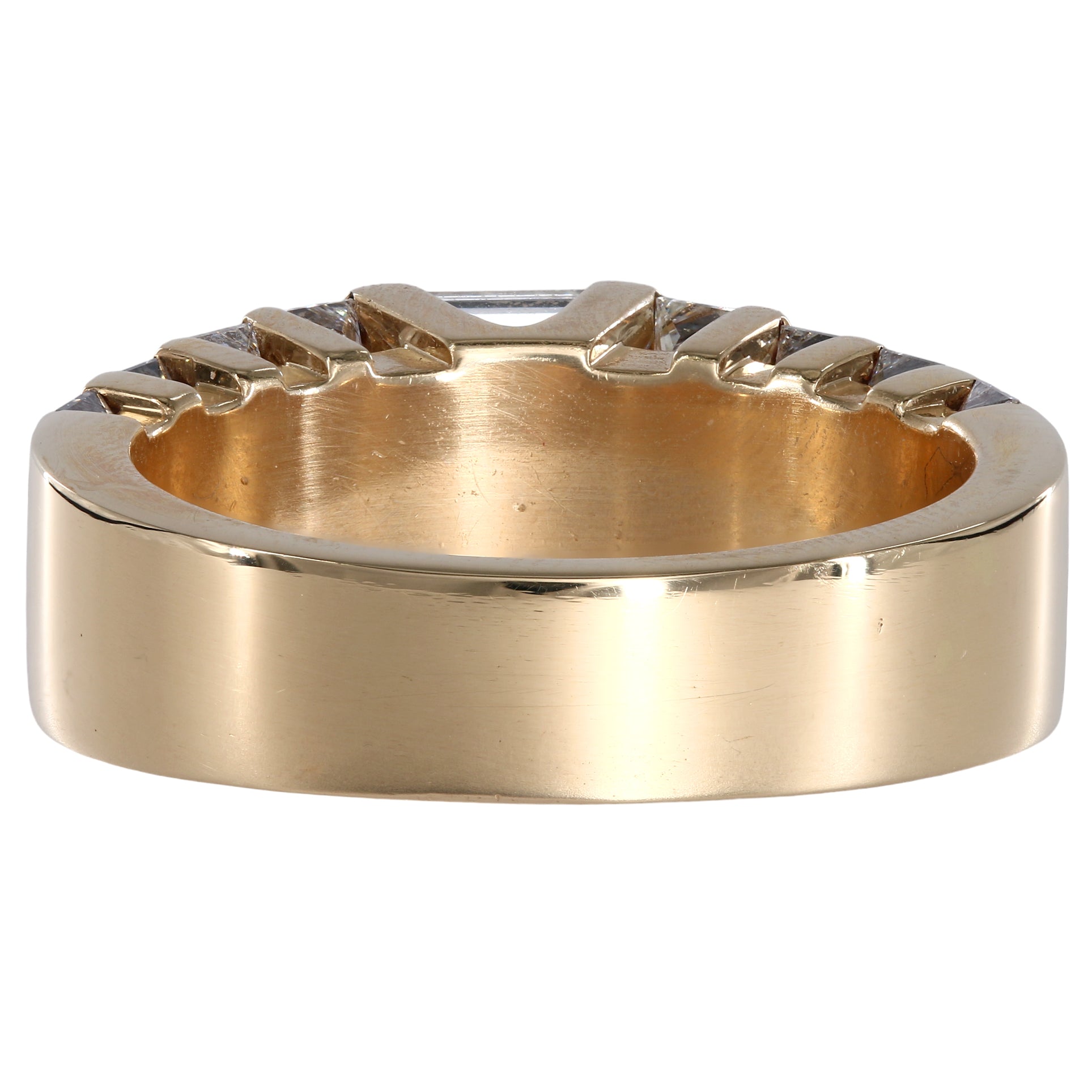 This handsome piece for men boasts a total of 2.99 carats of diamonds in a classic channel setting. The vintage-inspired design adds a touch of timeless charm, while the rich 18K yellow gold enhances its allure. Sized at 10.5, this ring is a sophisticated statement of enduring style and elegance.
