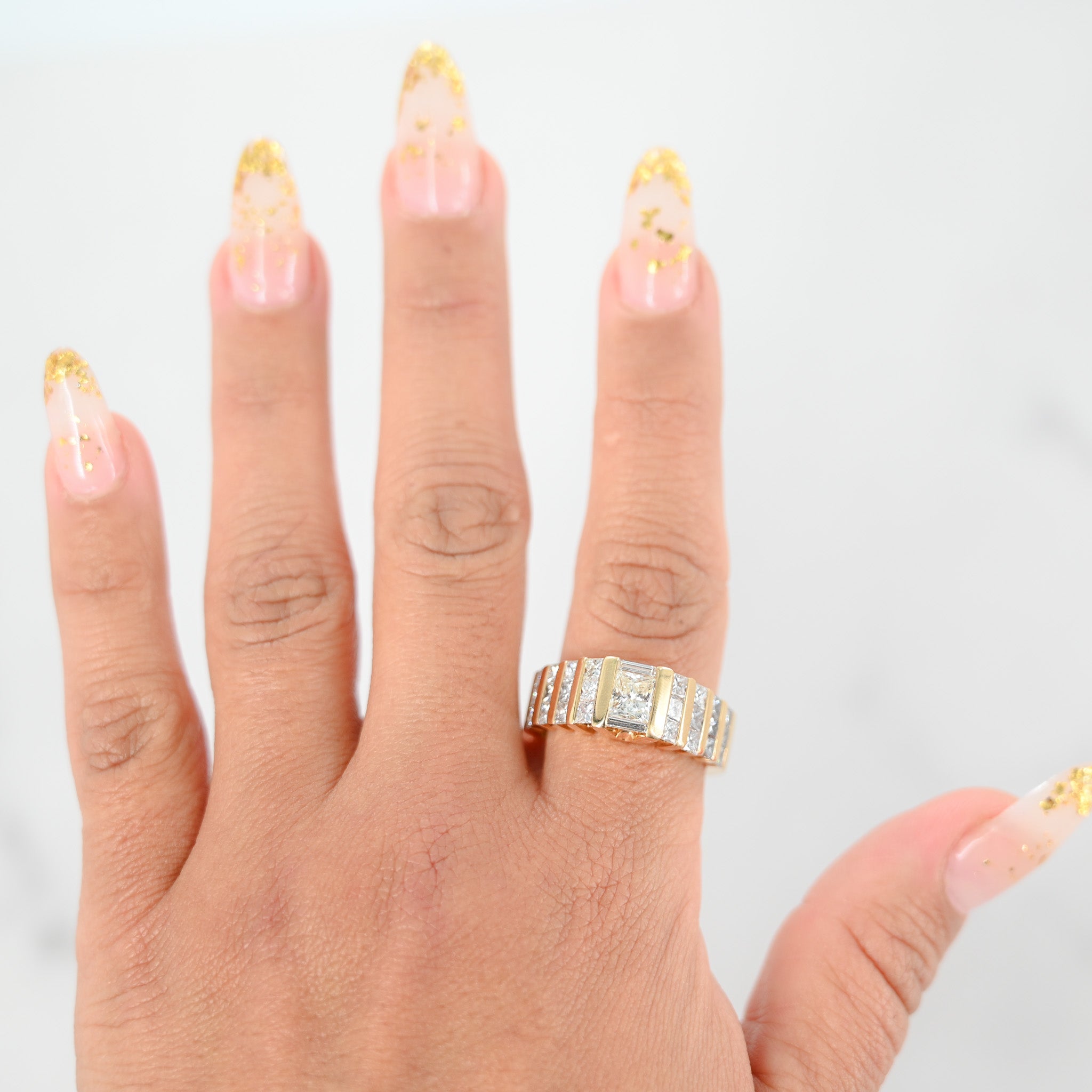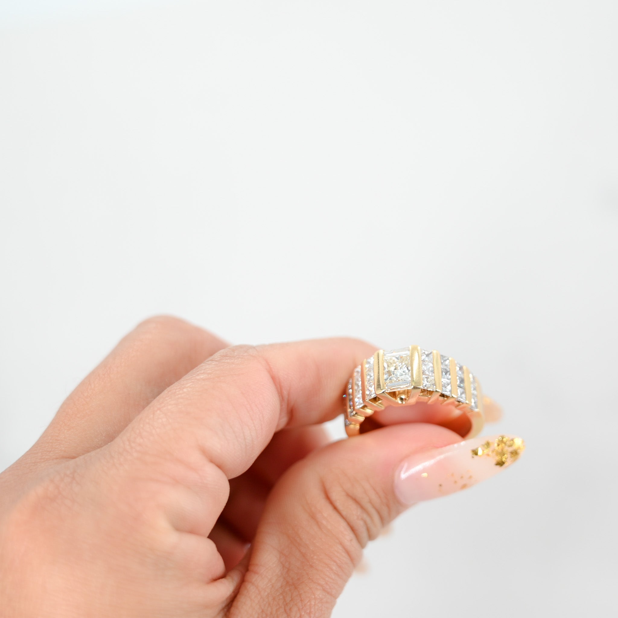 18K Yellow Solid Gold Diamond Channel Setting Vintage Ring