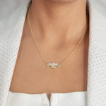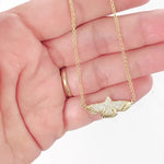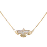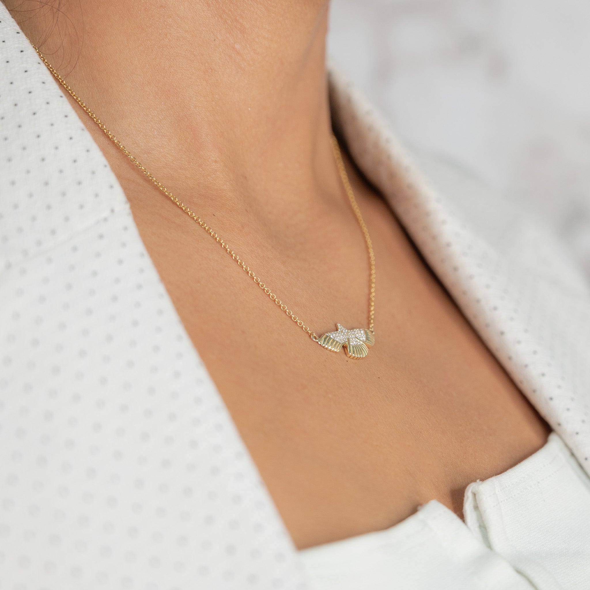 18K Yellow Solid Gold Diamonds Bird Charm Necklace