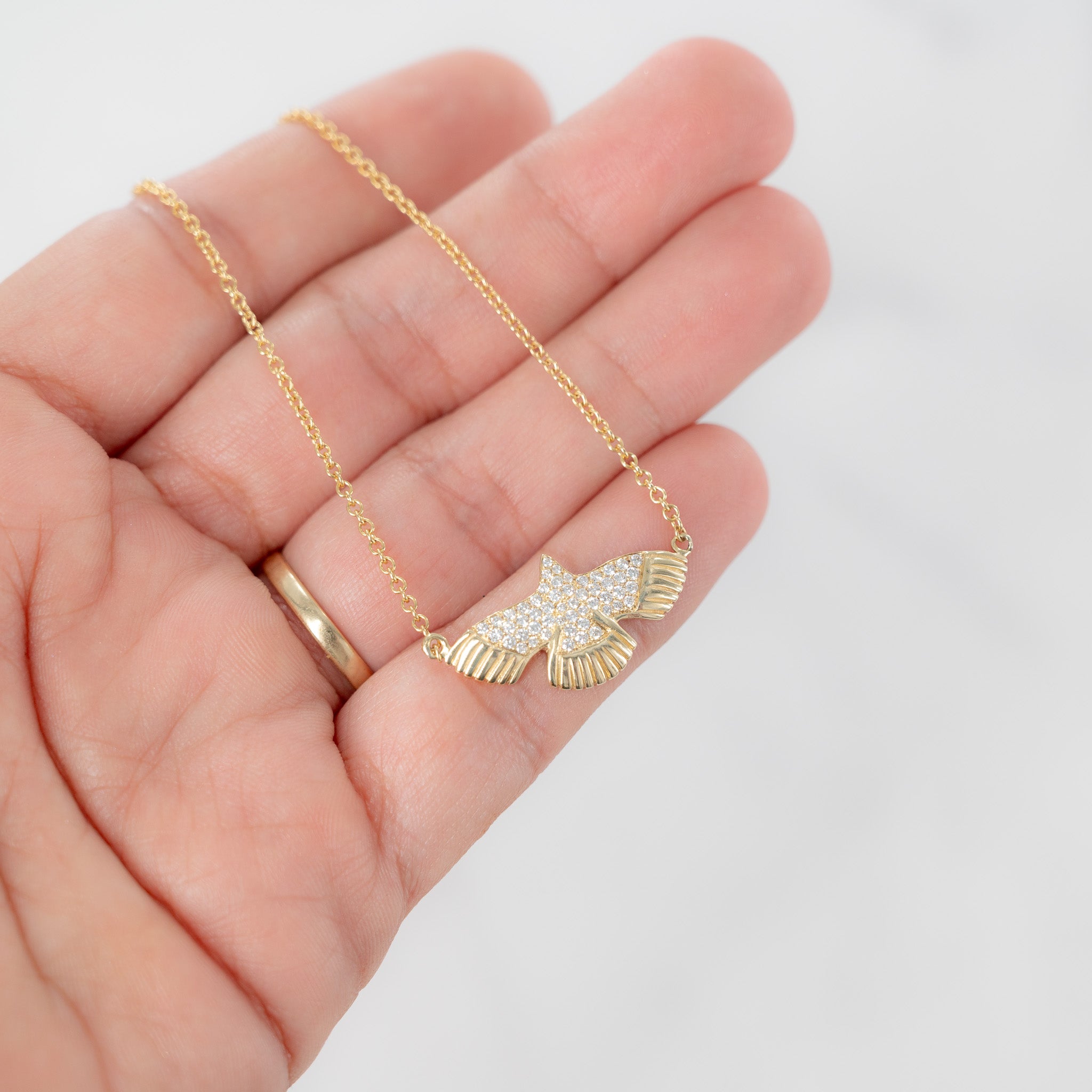 This necklace is perfect for adding a touch of nature-inspired elegance to your look, and it's an ideal gift for bird enthusiasts or those who appreciate the beauty of fine jewelry.