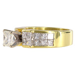 18k Yellow Solid Gold Princess Cut Natural Cluster Diamonds Engagement Ring