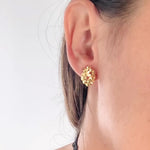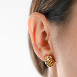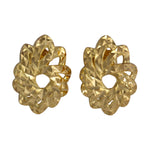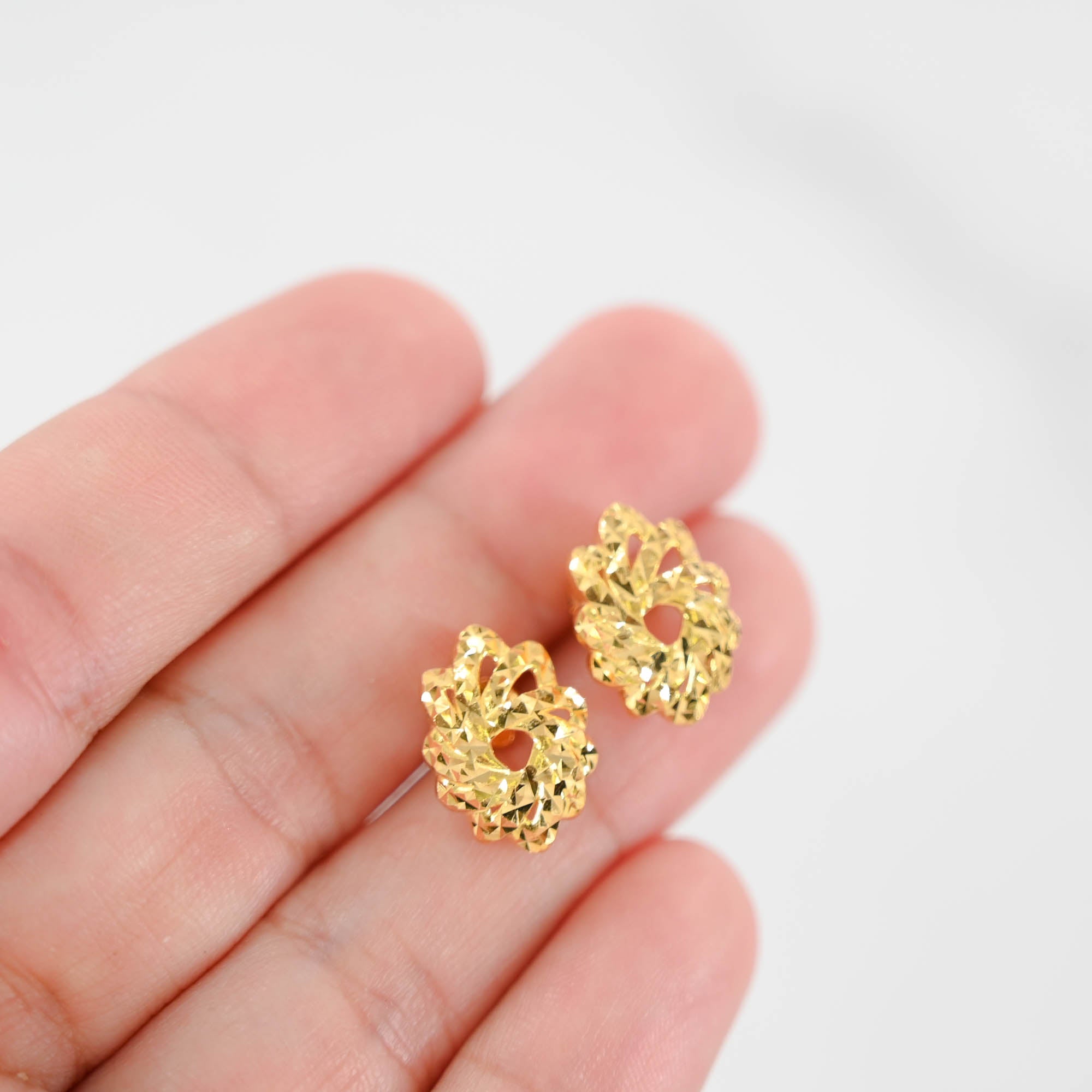 22K Yellow Gold Oval Diamond-Cut Woven Pattern Stud Earrings
