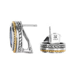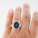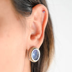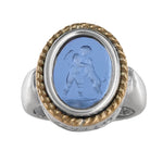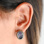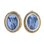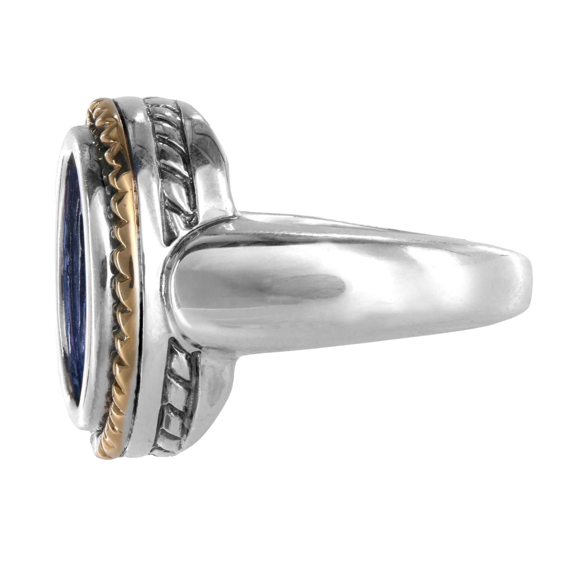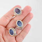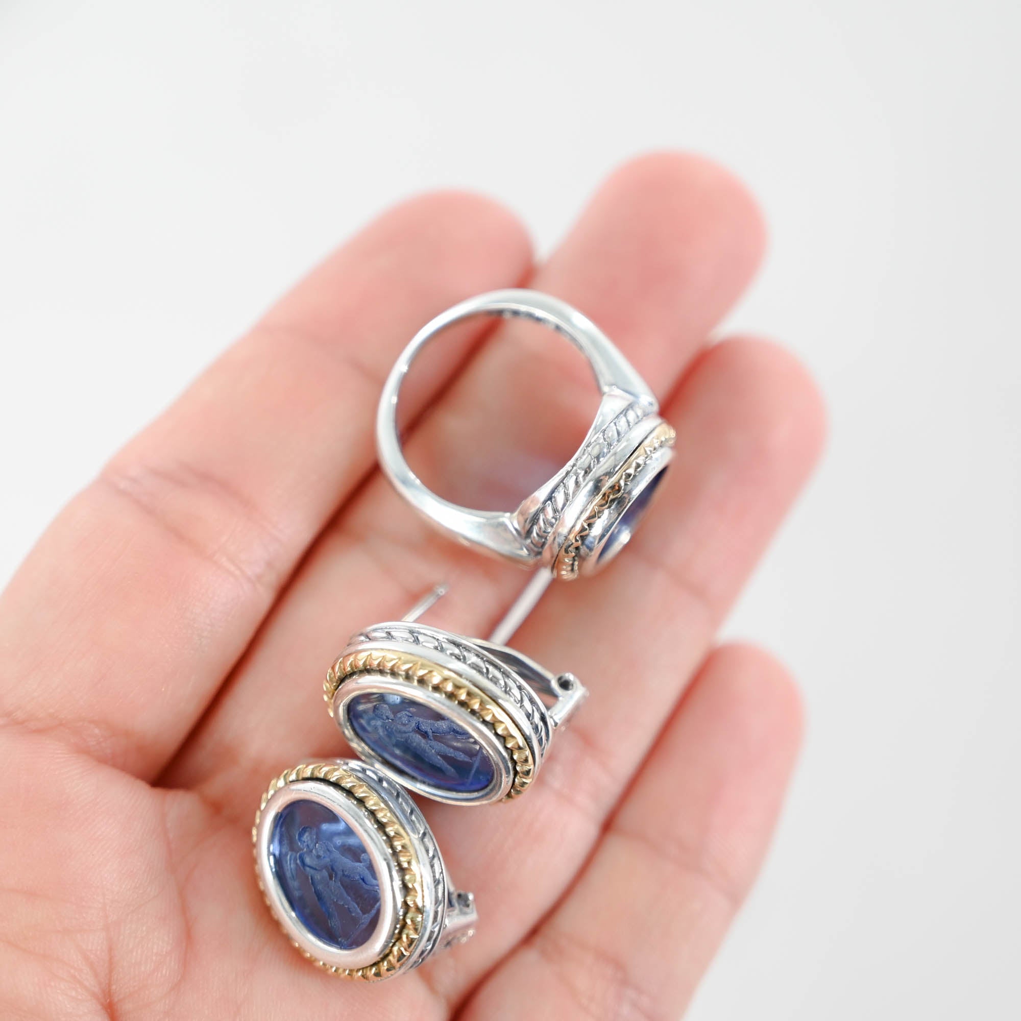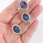 925 Silver With 18K Yellow Gold Border Frame Iolite Intaglio Vintage Jewelry Set