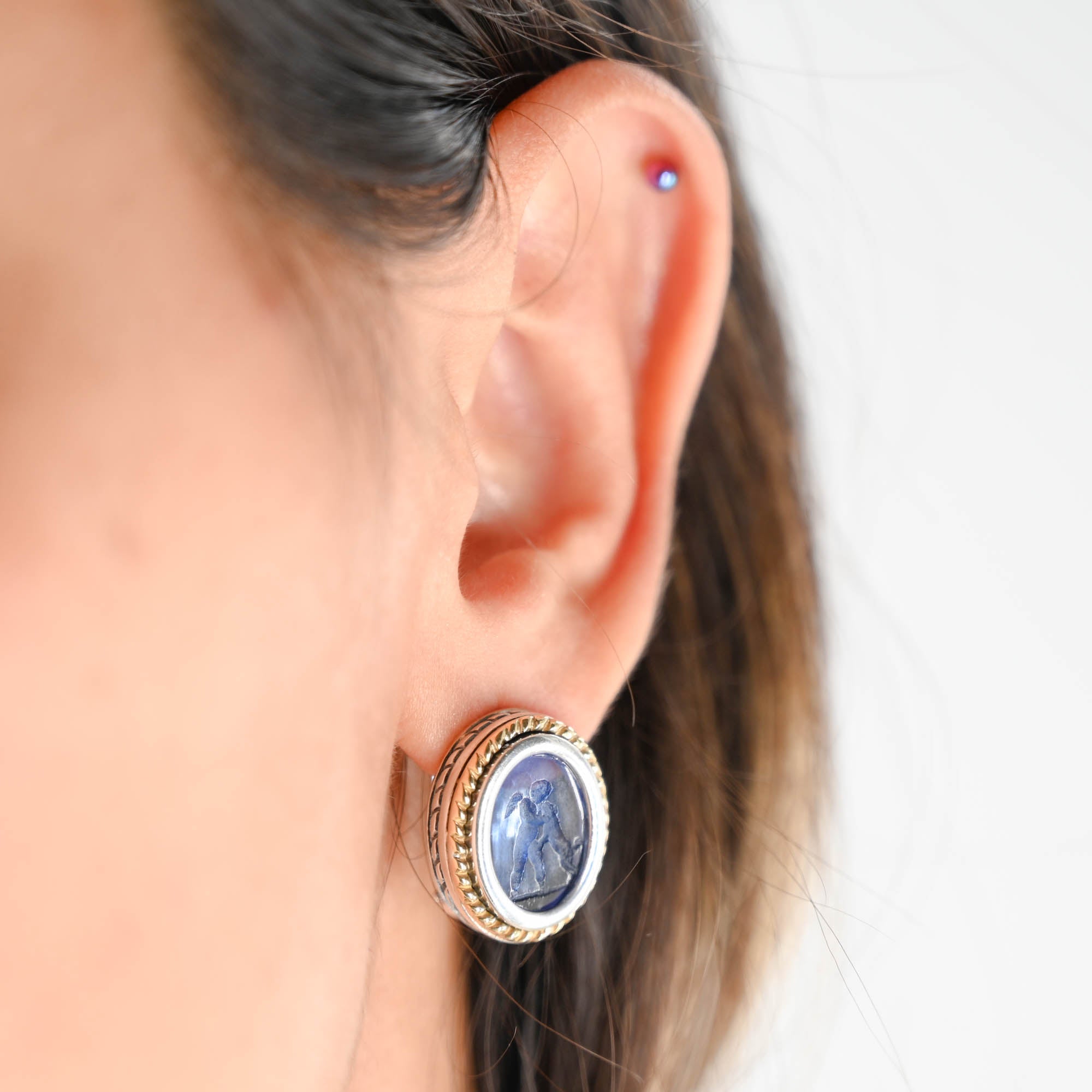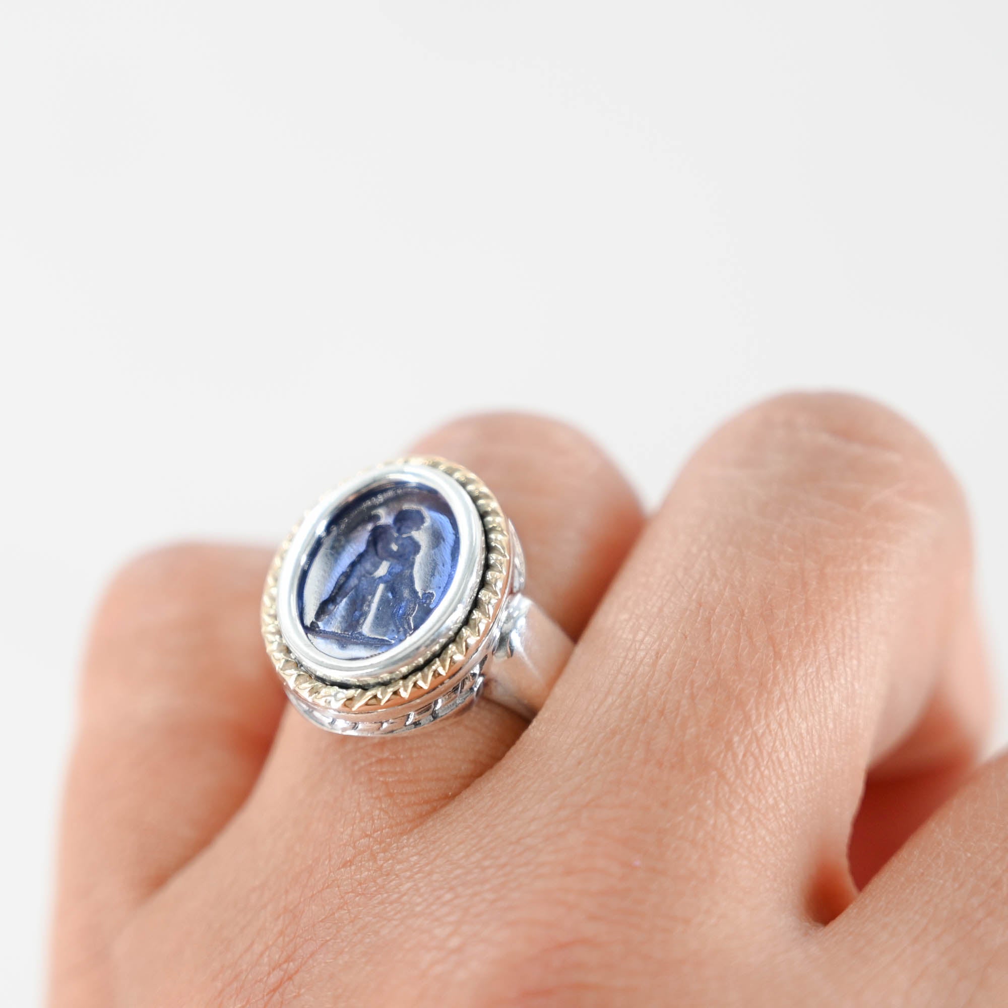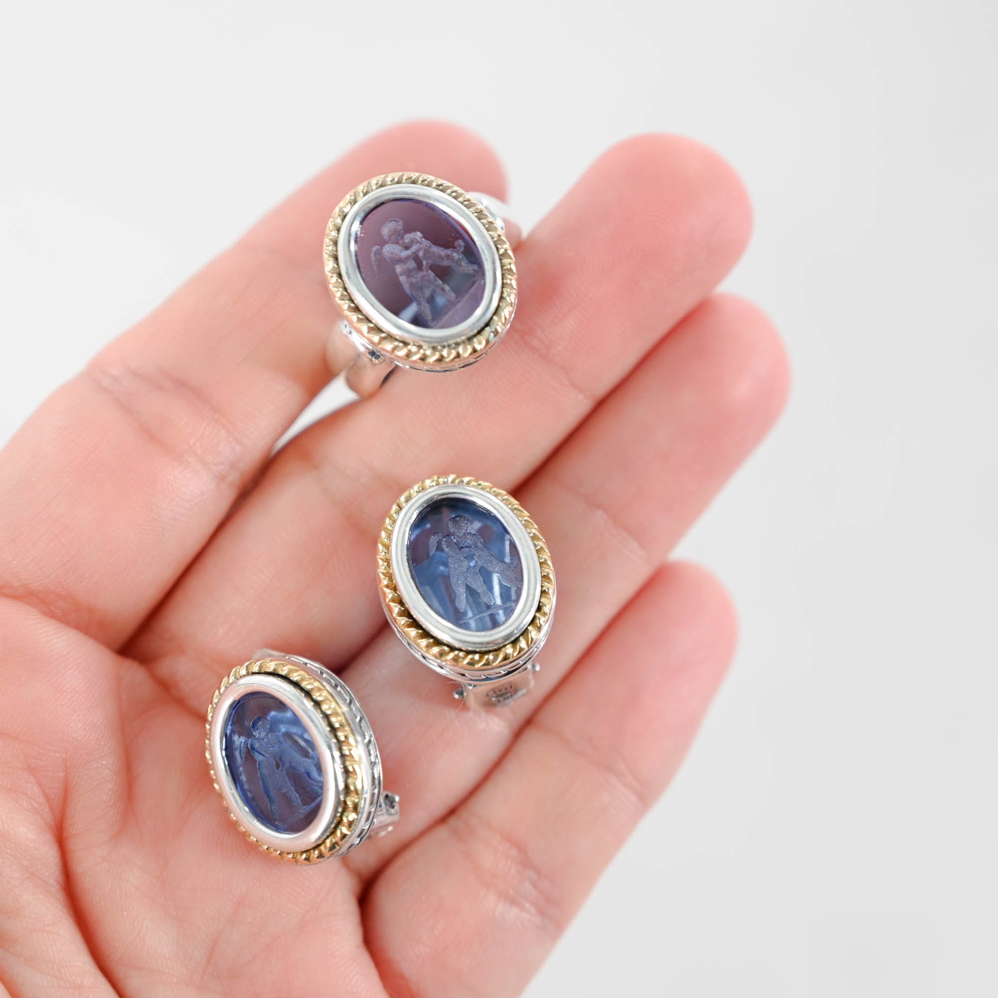 Step back in time with this exquisite vintage jewelry set featuring 925 silver with an elegant 18K yellow gold border frame. Adorned with a stunning iolite intaglio, this unique set showcases intricate craftsmanship and timeless beauty. Perfect for special occasions or as a standout addition to your collection, this piece beautifully combines vintage charm with modern elegance.