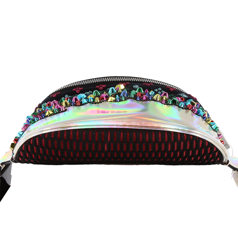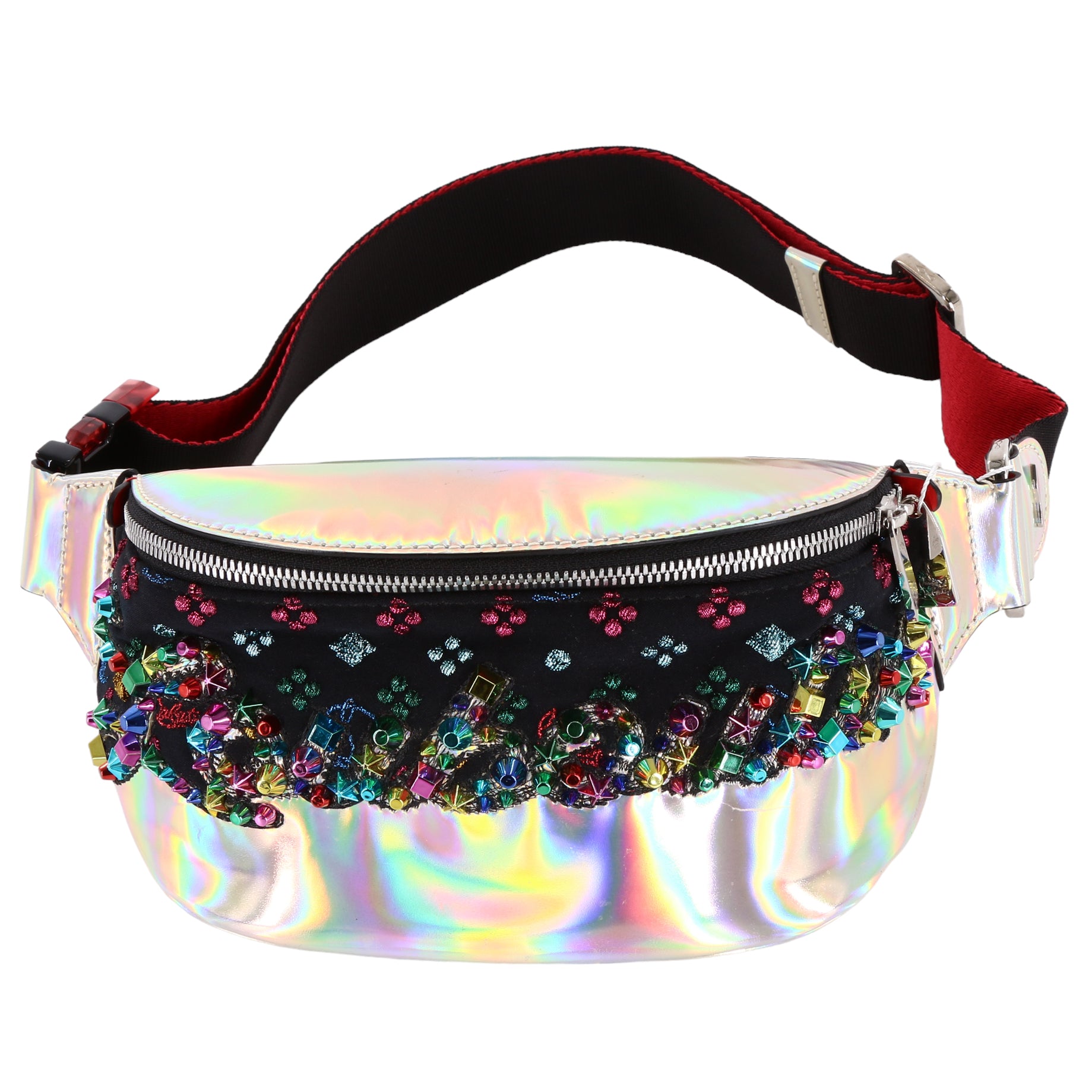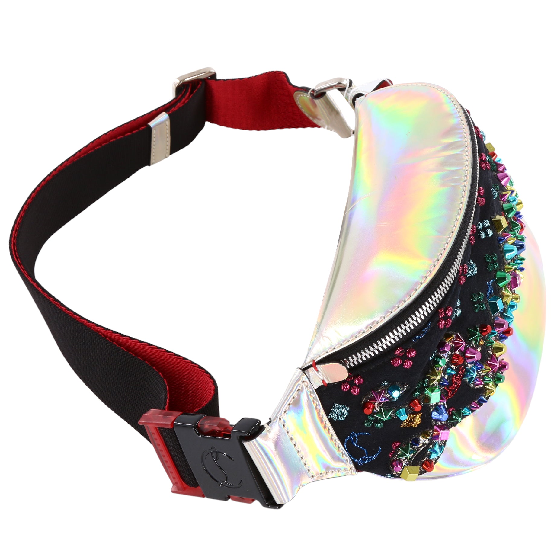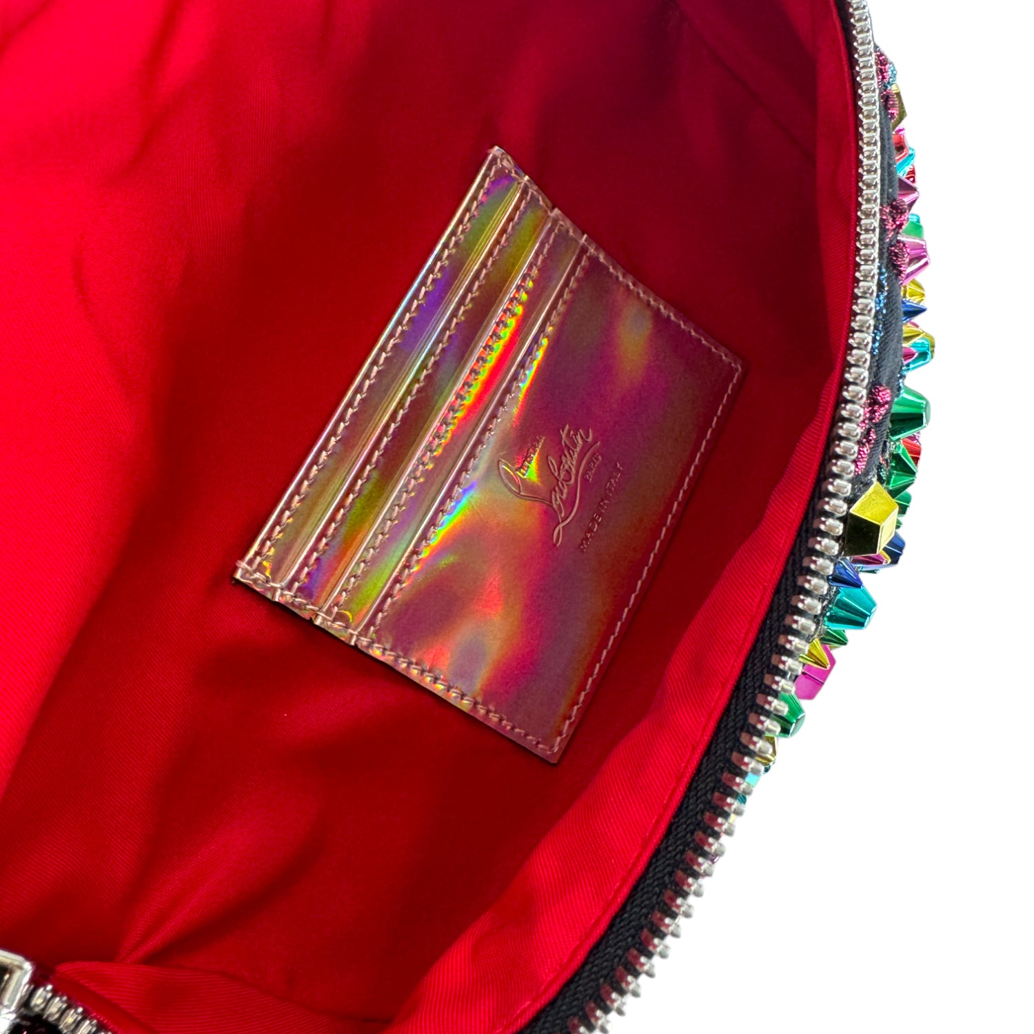 Authentic Christian Louboutin Mary Jane Waist Bag Spiked Leather and Hologram Leather