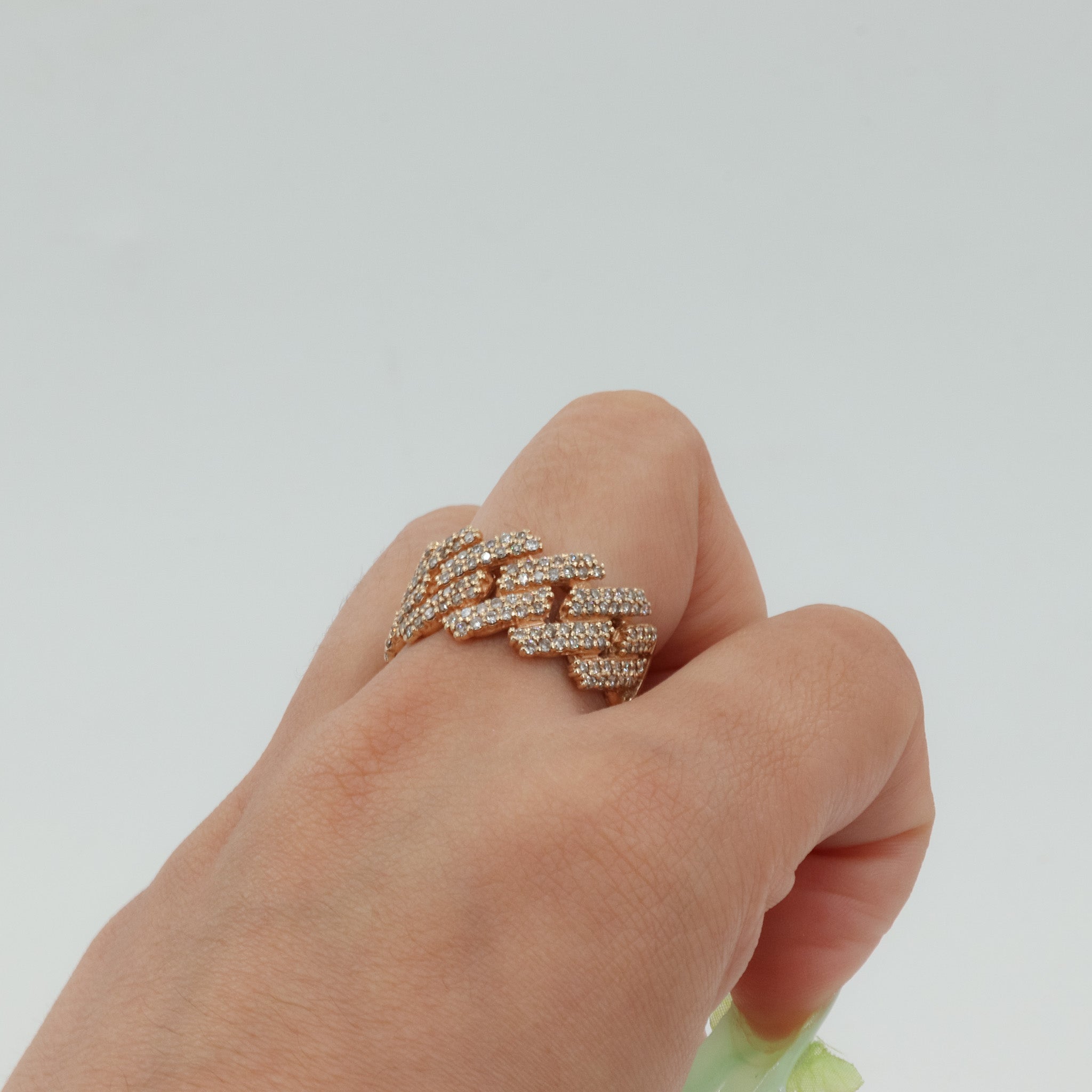 Estate 14k Yellow Gold Diamond Cuban Link Rink