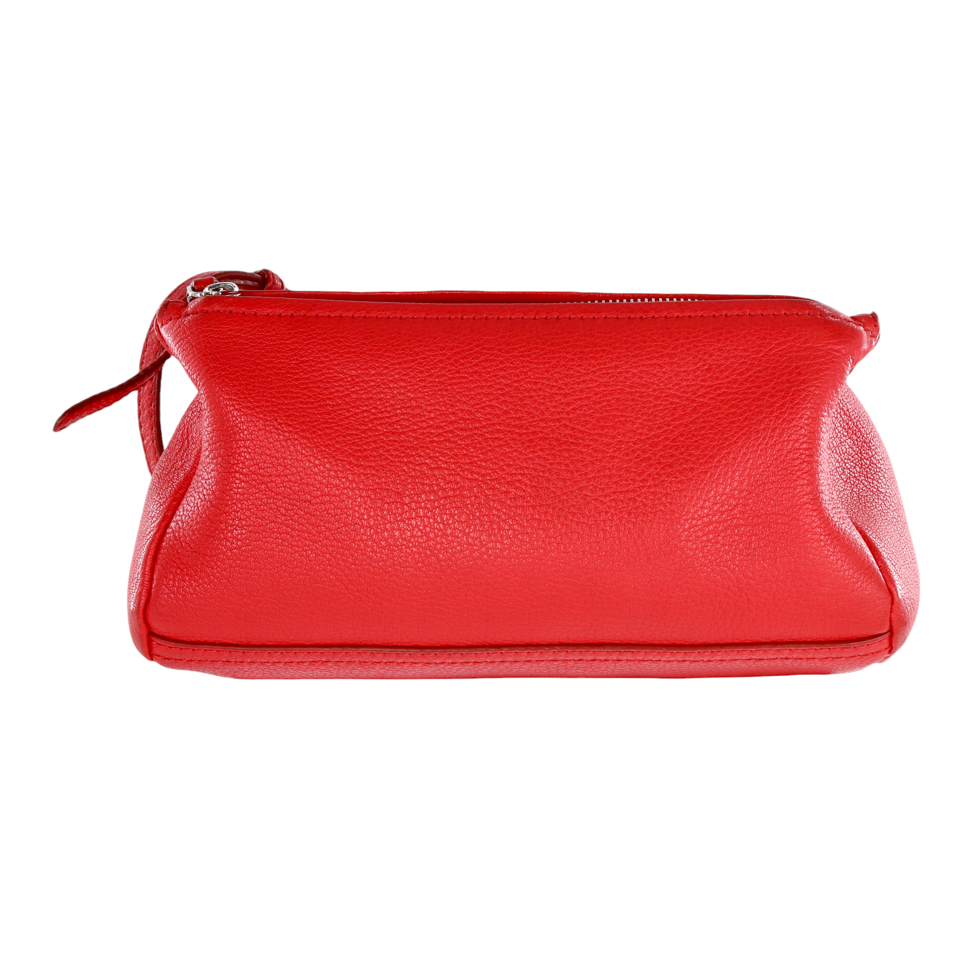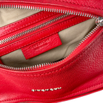 This is an authentic GIVENCHY Sugar Goatskin Mini Pandora in Red. This chic messenger bag is finely crafted of soft, supple goatskin leather in red. The shoulder bag features two top zipper pockets with a crossbody strap in polished silver hardware. The top zippers open to a light beige fabric interior with a zipper pocket.