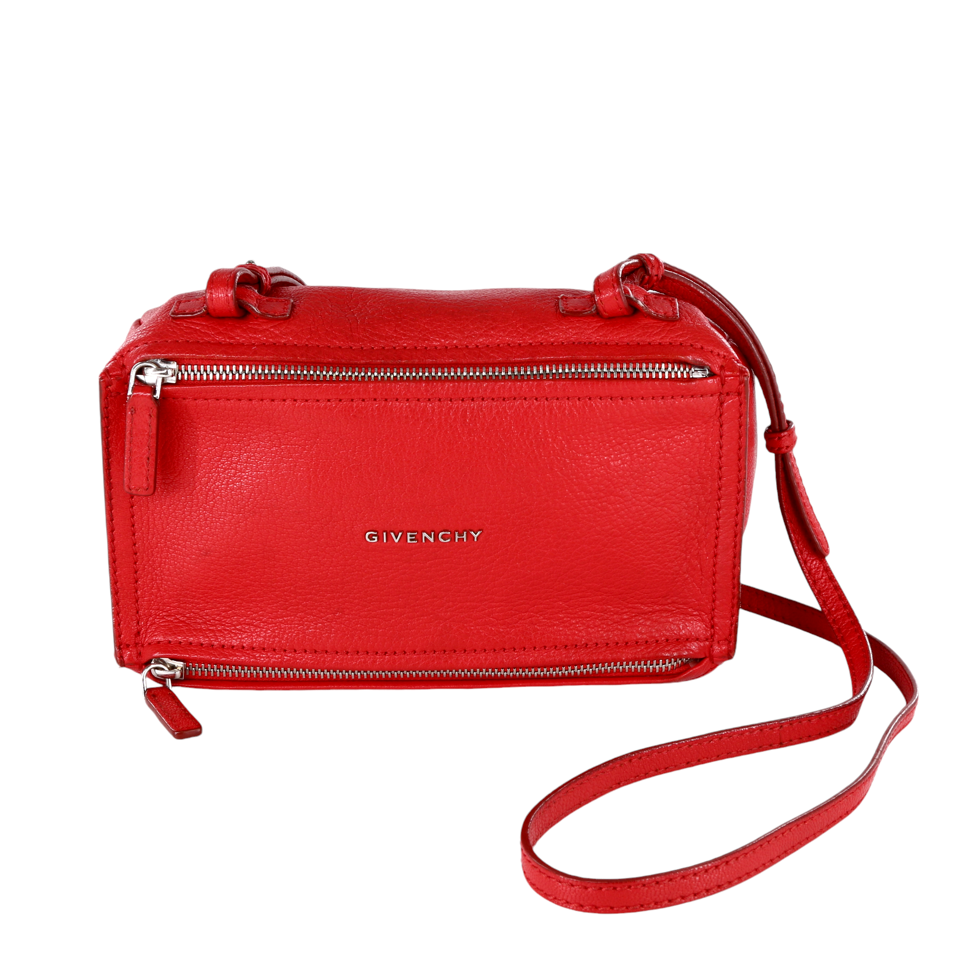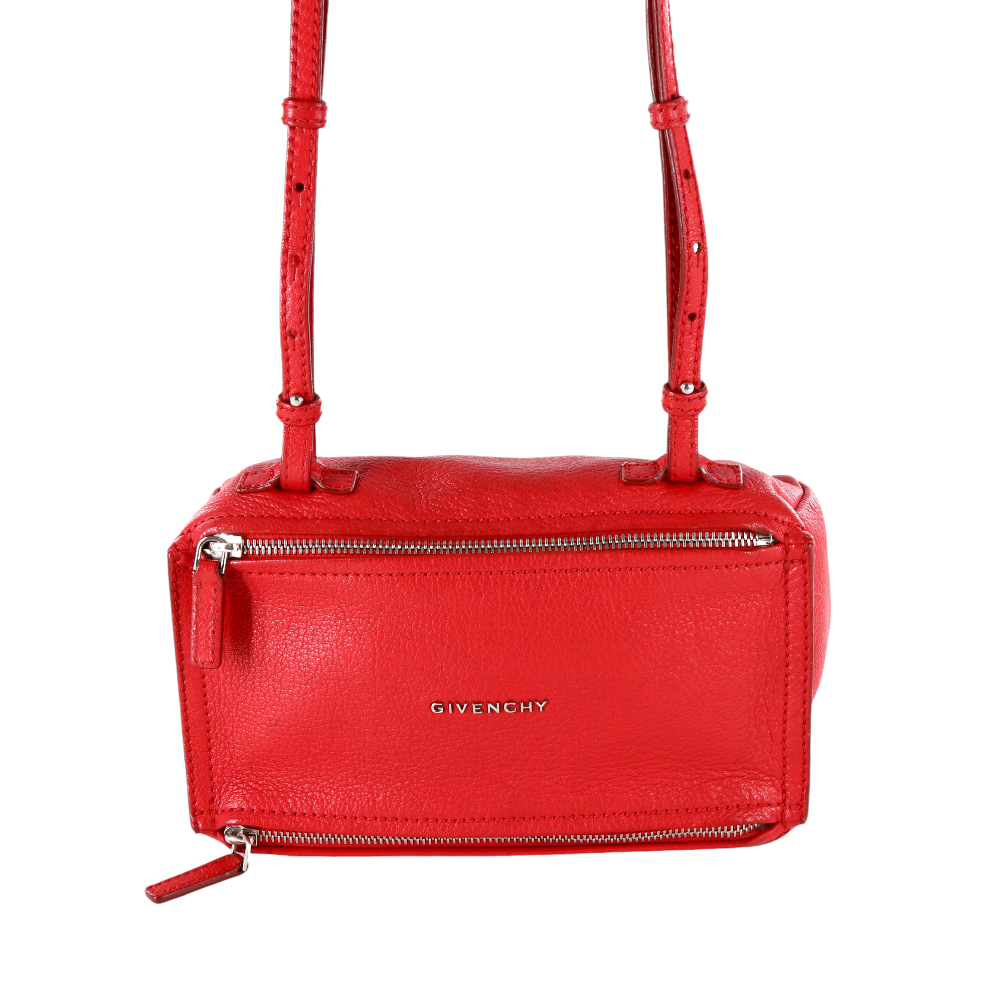 GIVENCHY Sugar Goatskin Leather Mini Pandora Shoulder Bag Red
