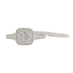 Ladies 10K White Gold Diamond Halo Cushion-Shaped Engagement Ring & Wedding Band