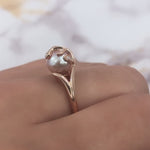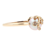 Ladies 14k Rose Gold Diamond and Rose Pearl Ring/ Rose Gold Diamond Pearl Ring/14k Real Gold Pearl Ring with Diamonds