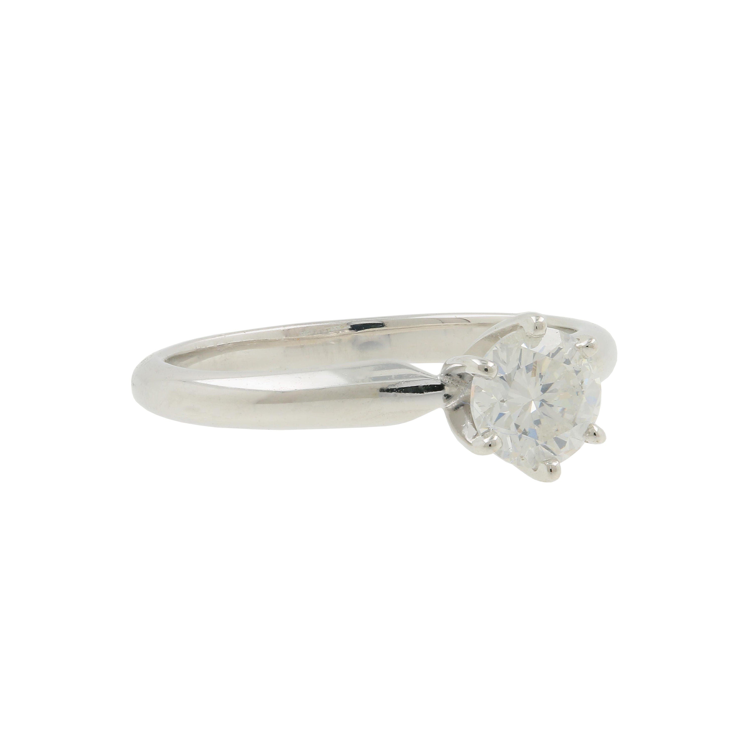 Ladies 14K White Gold Round Cut Diamond Solitaire Engagement Ring - 0.65CT