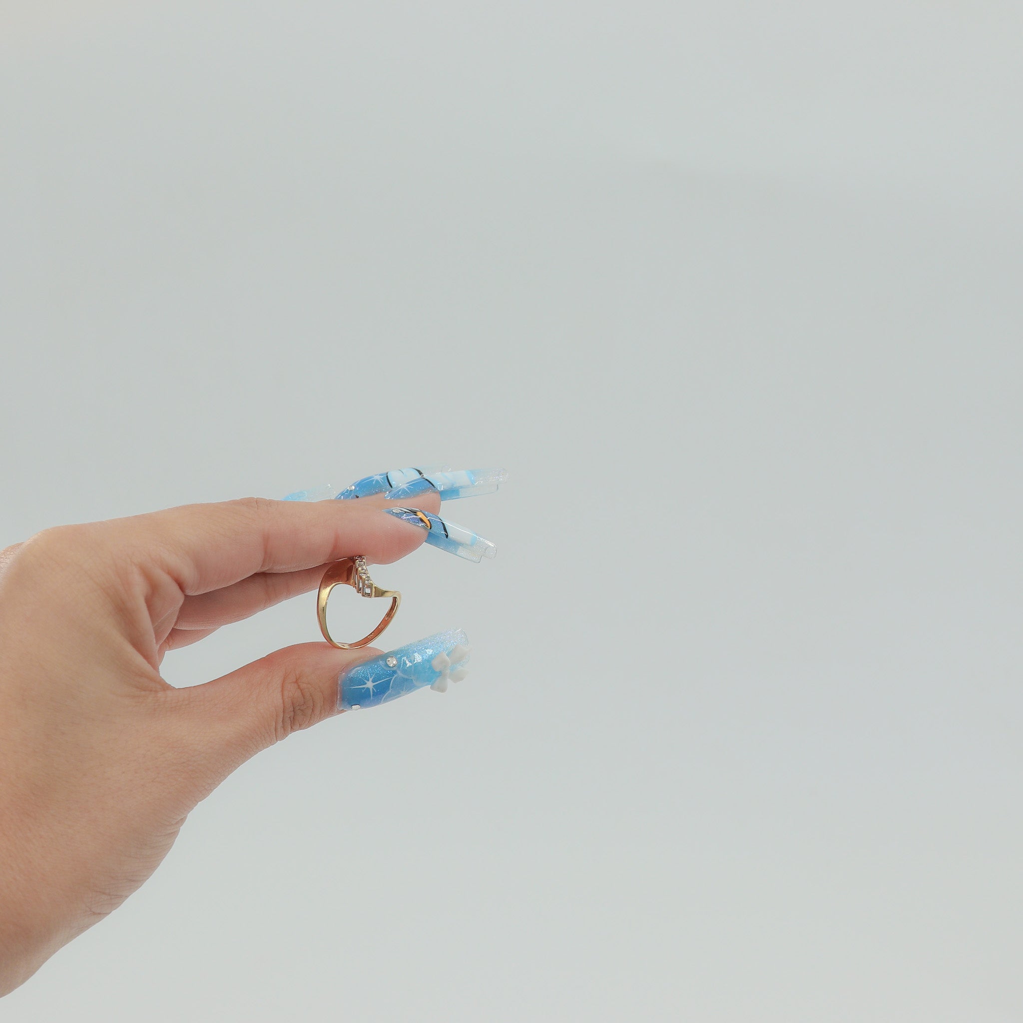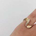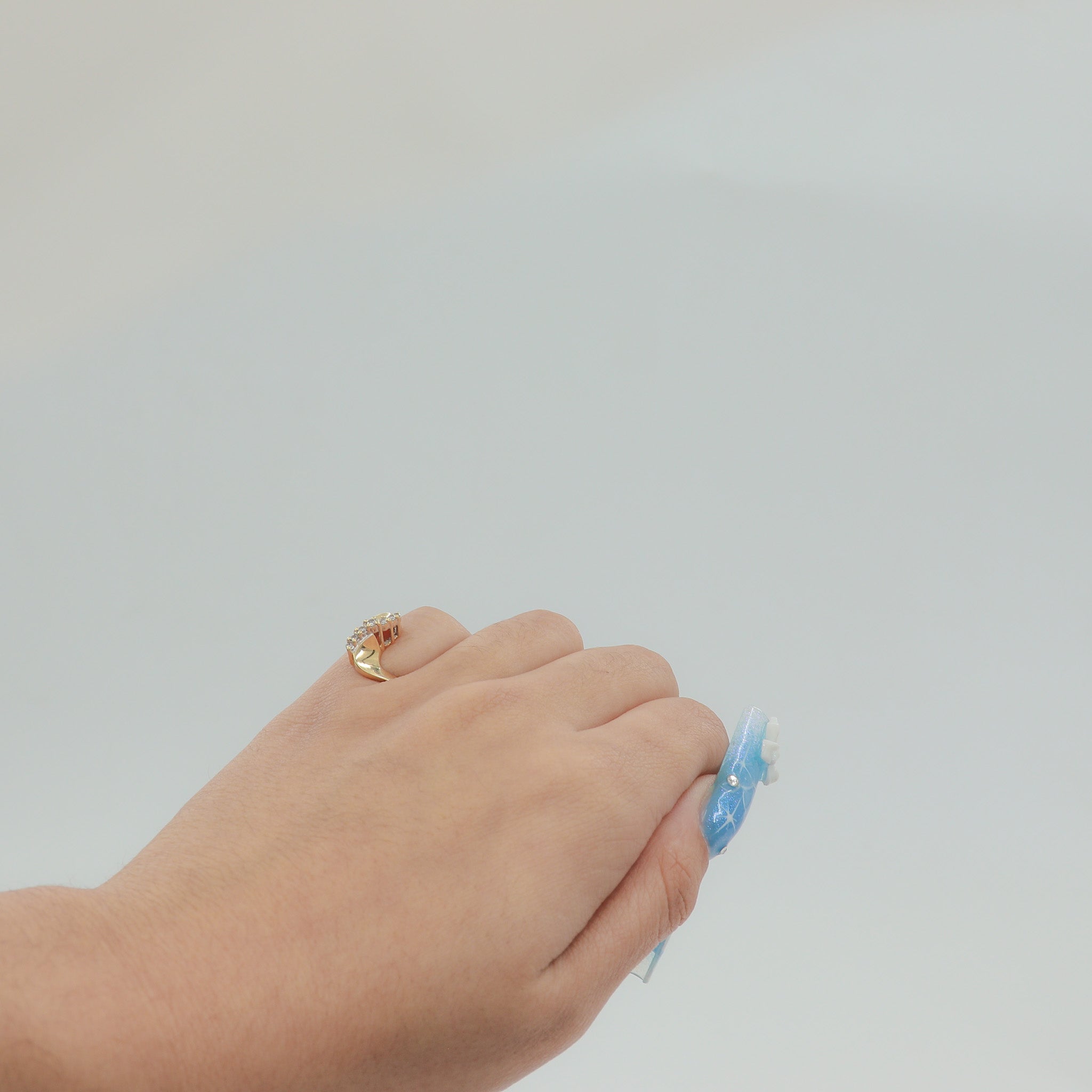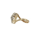 Adorn your finger with sophistication and allure with this Ladies 14k Yellow Diamond Cocktail Ring. The slender shank, measuring 2.1mm, gracefully supports the head, a dazzling focal point measuring 15mm. Designed for a ring size of 4.5, it ensures a comfortable and secure fit. The centerpiece boasts a brilliant round-cut diamond with a carat weight of 0.025, surrounded by six accent round-cut diamonds, each weighing 0.02ct. The stones exhibit a captivating color range of H-J and clarity of SI2, contributing to a total carat weight of 0.145ctw. Crafted in lustrous yellow gold with a purity of 14k, the ring weighs 2.7g, making it an exquisite addition to your jewelry collection. Elevate your style with the timeless elegance of this yellow diamond cocktail ring.