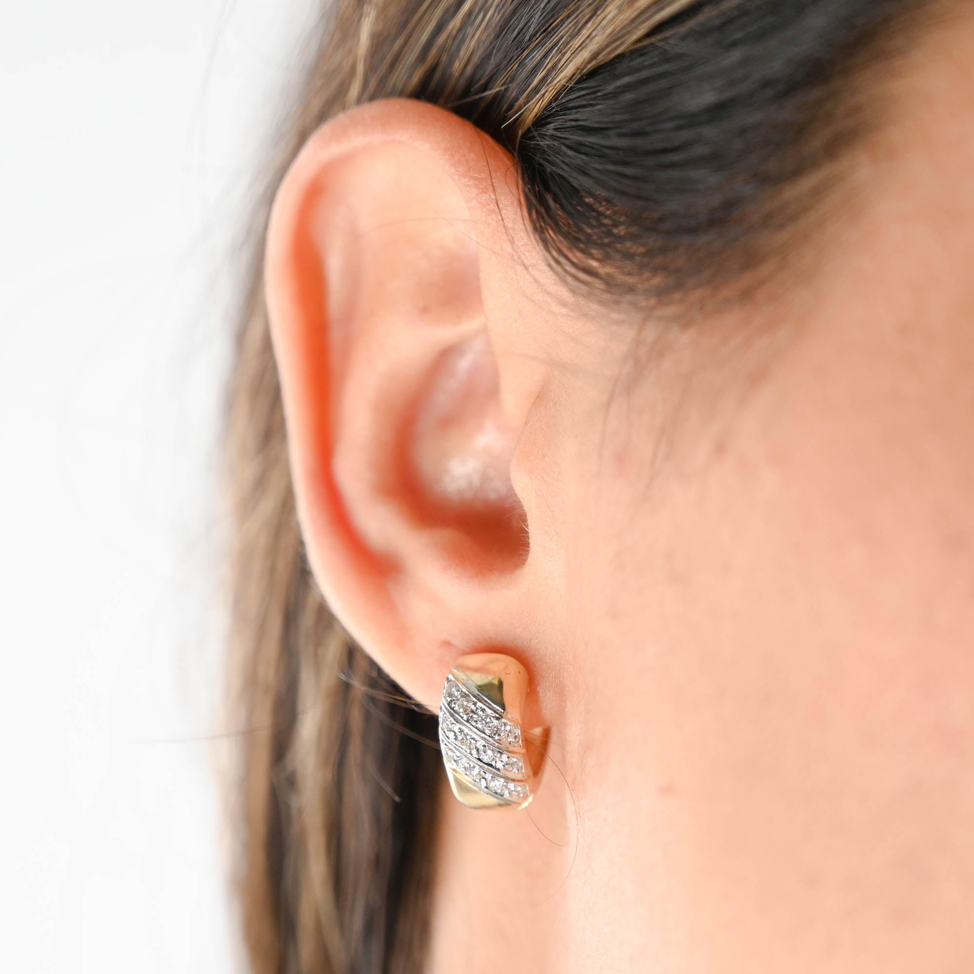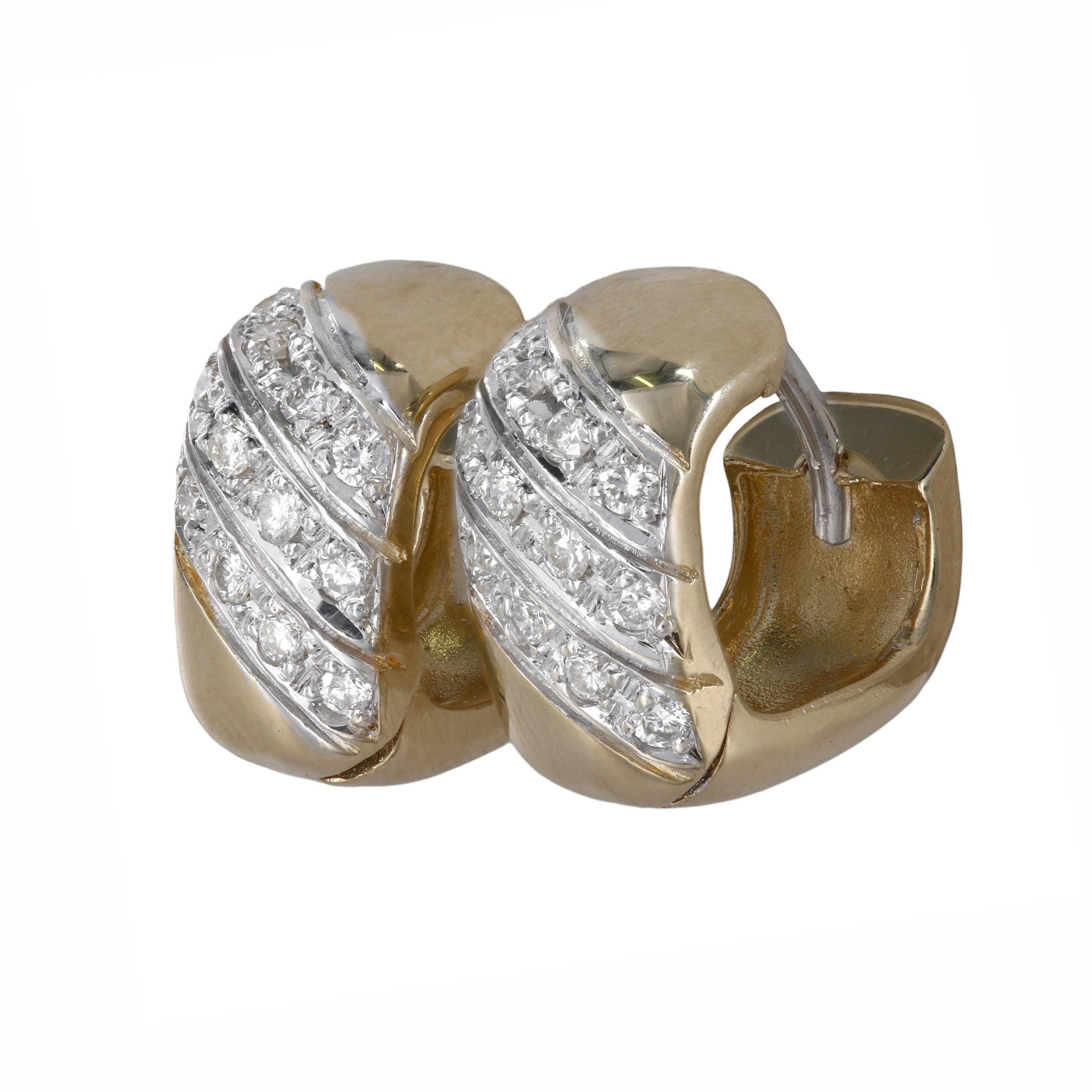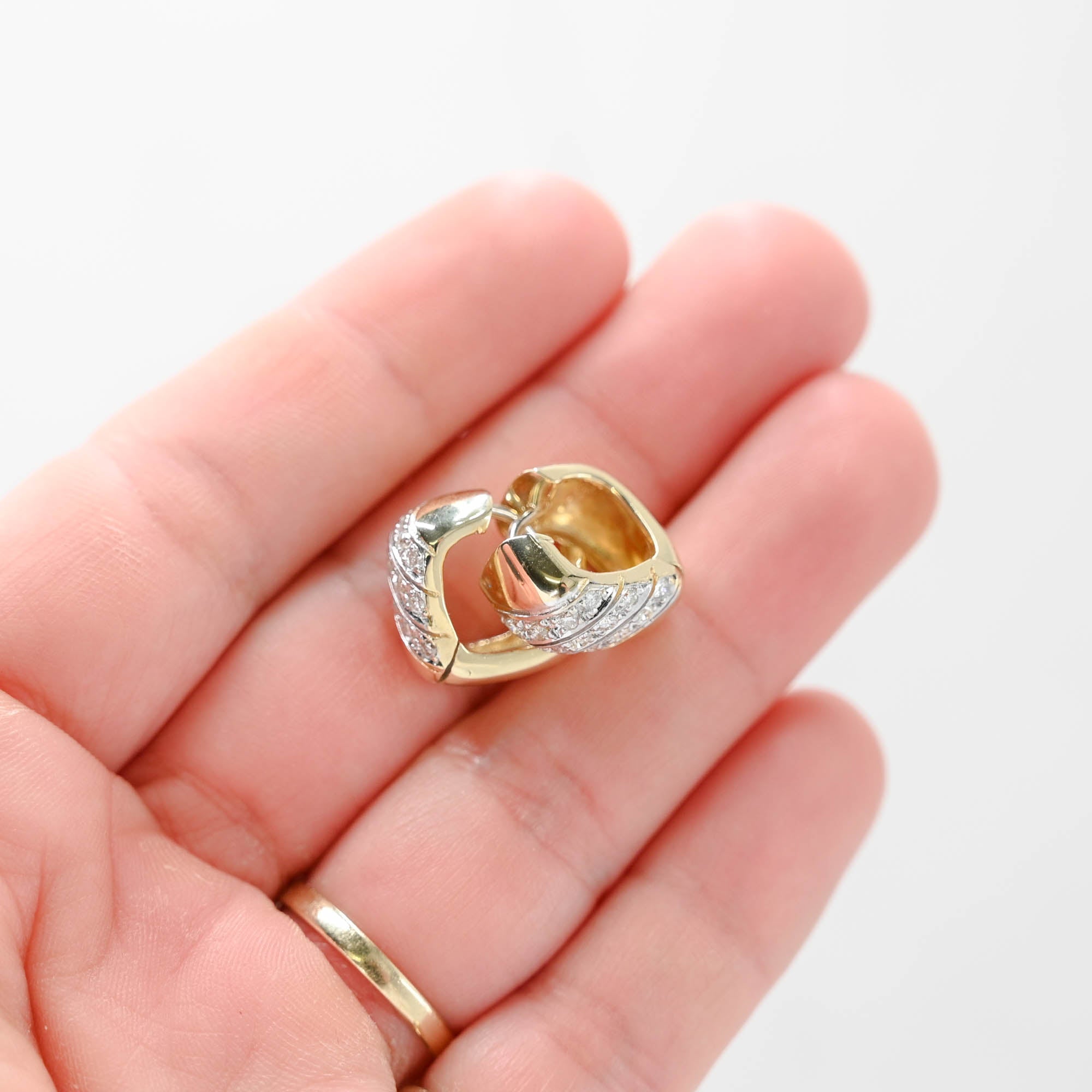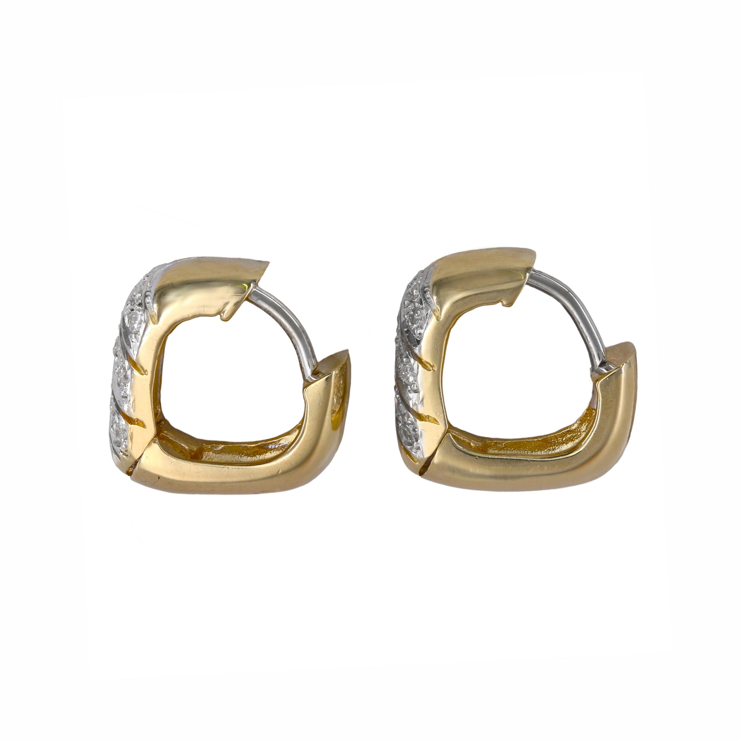 Experience the allure of our Ladies 14k Yellow Gold Diamond Square Huggie Earrings. With an earring length of 14mm and a width of 7.75mm, they elegantly frame your ears. The hinged closure offers a secure and comfortable fit. Embellished with 24 round brilliant cut diamonds, each weighing 0.03ct, these earrings boast a total carat weight of 0.72ctw. Meticulously crafted from 14k yellow gold, they carry a weight of 7g, symbolizing both opulence and enduring quality. Elevate your style effortlessly with these square huggie earrings, a perfect blend of modern design and timeless grace.