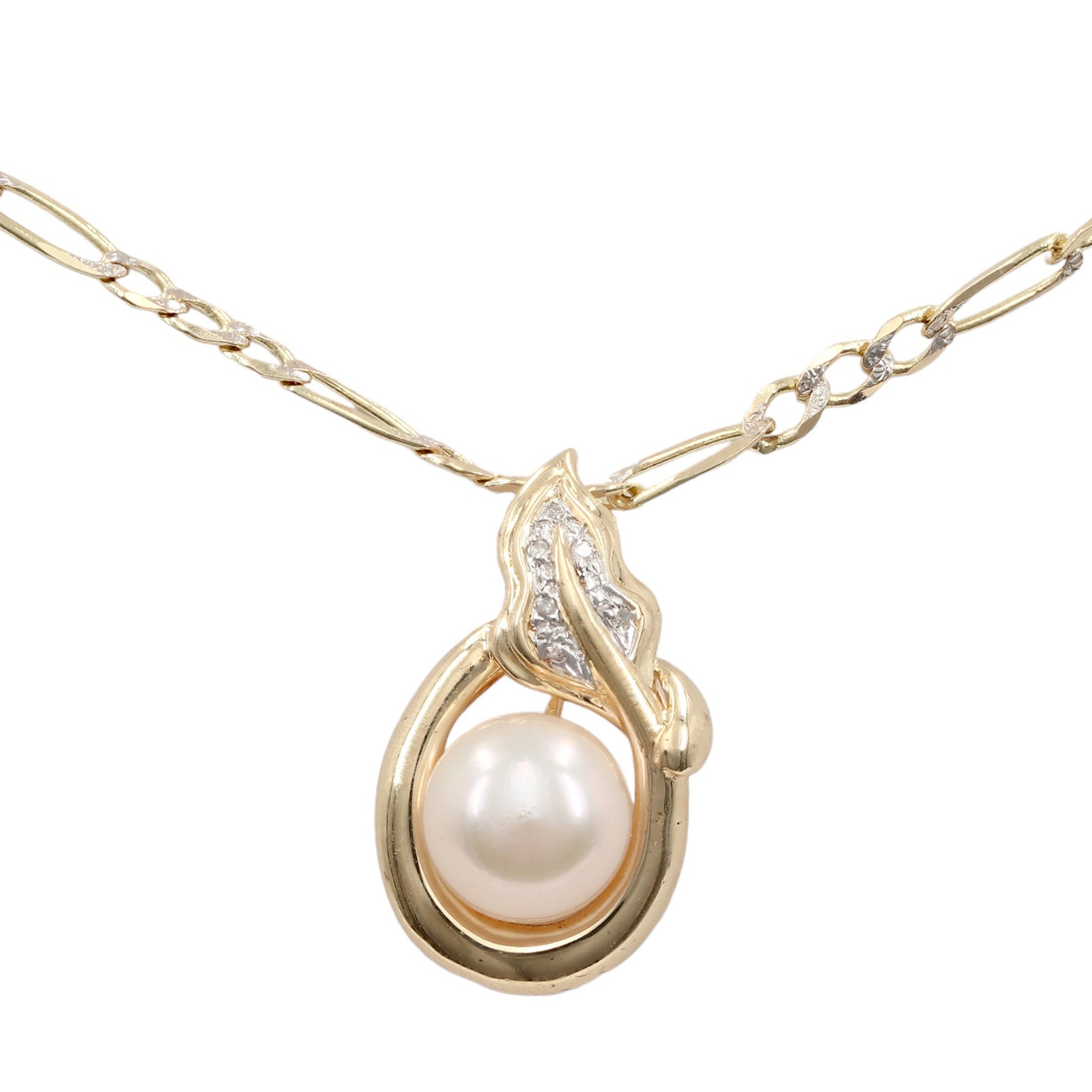 Ladies 14k Yellow Gold Pearl and Diamond Pendant