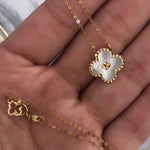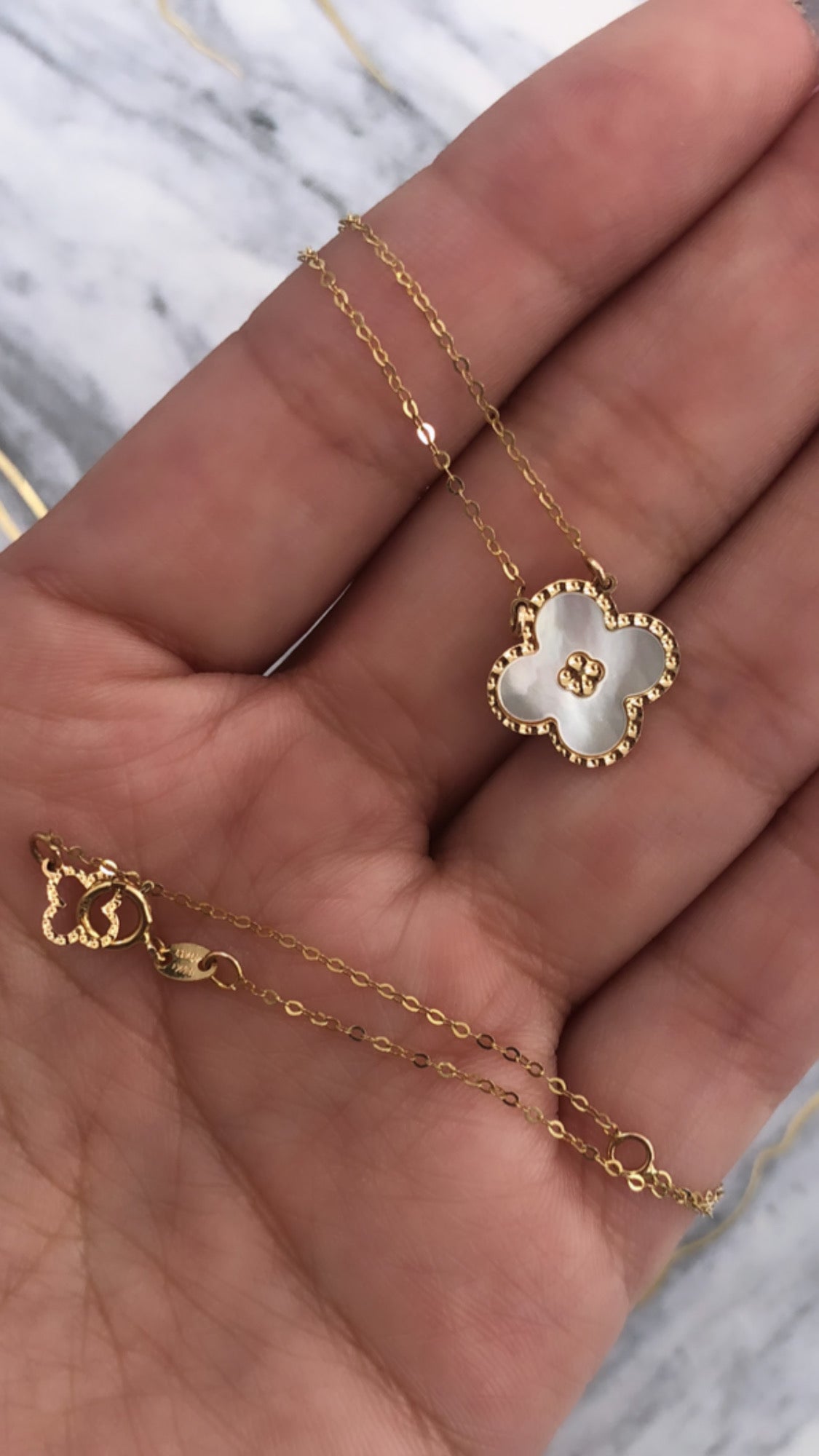 Ladies 18in 14k Yellow Gold Mother of Pearl Quatrefoil Necklace