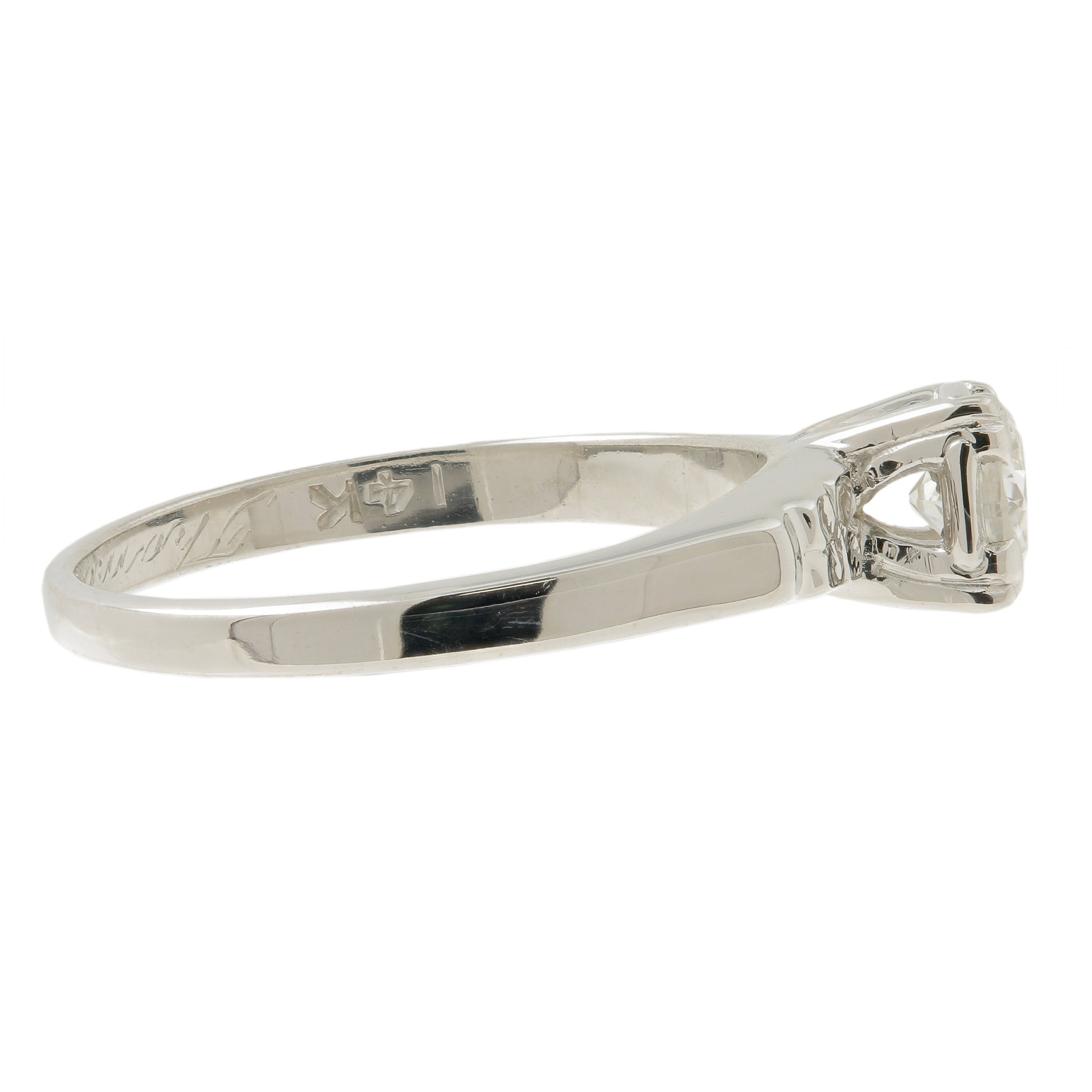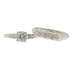 14K White Gold Old Mine Cut Diamond Engagement Ring & Wedding Band
