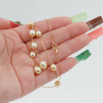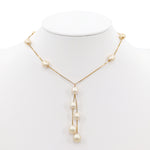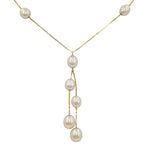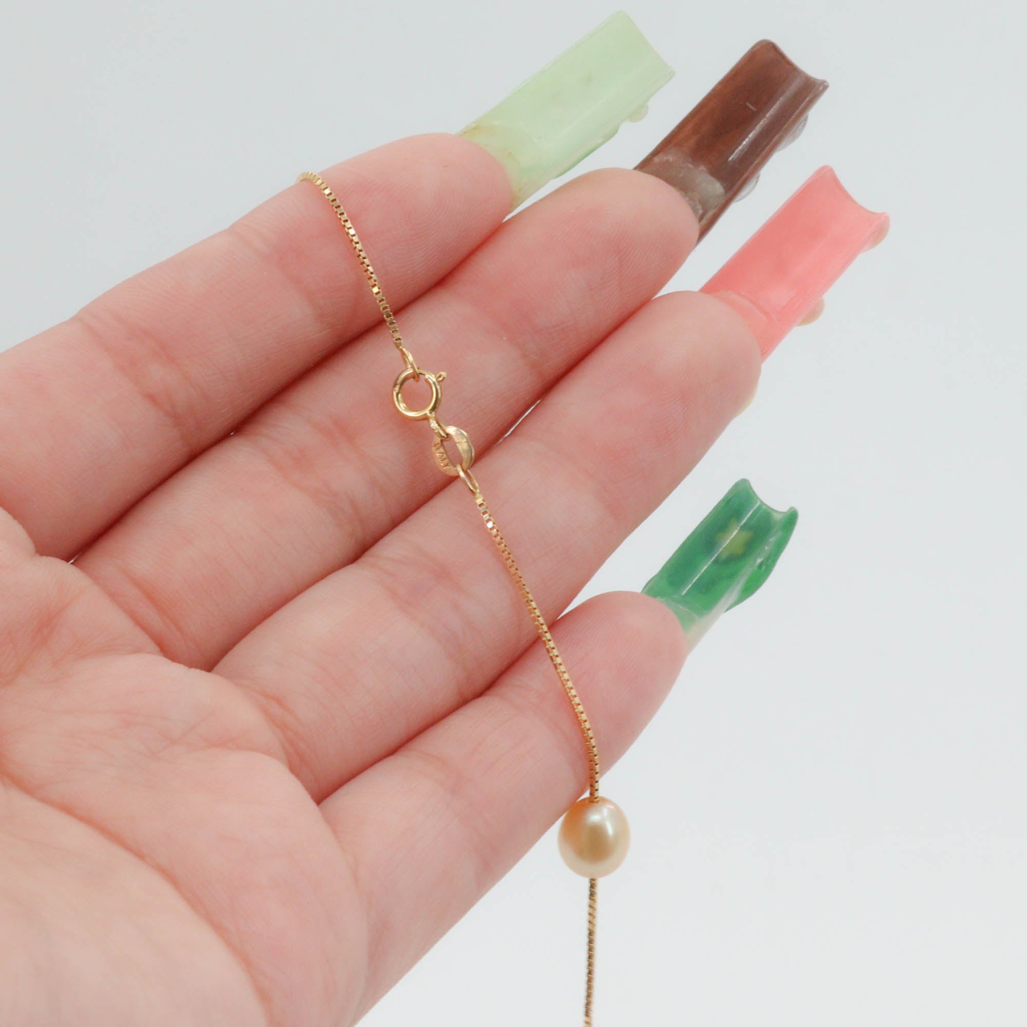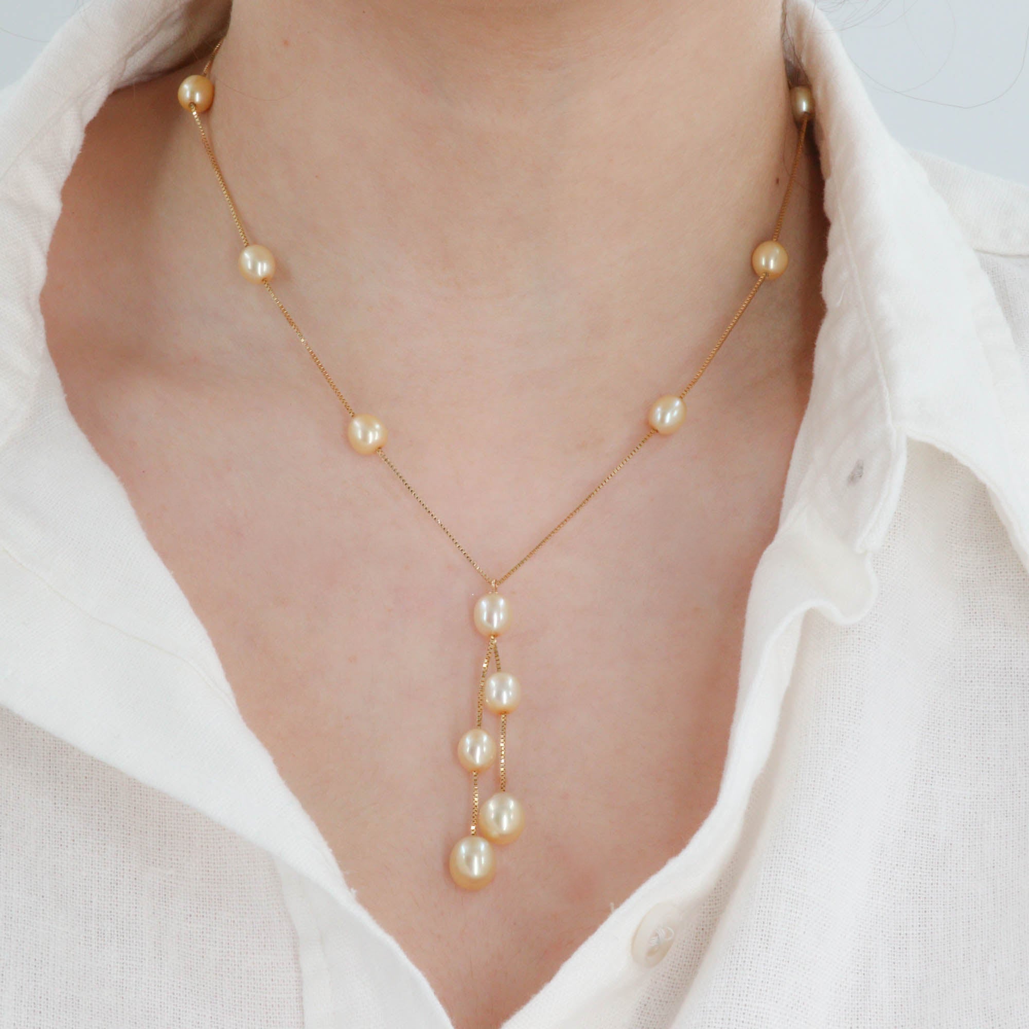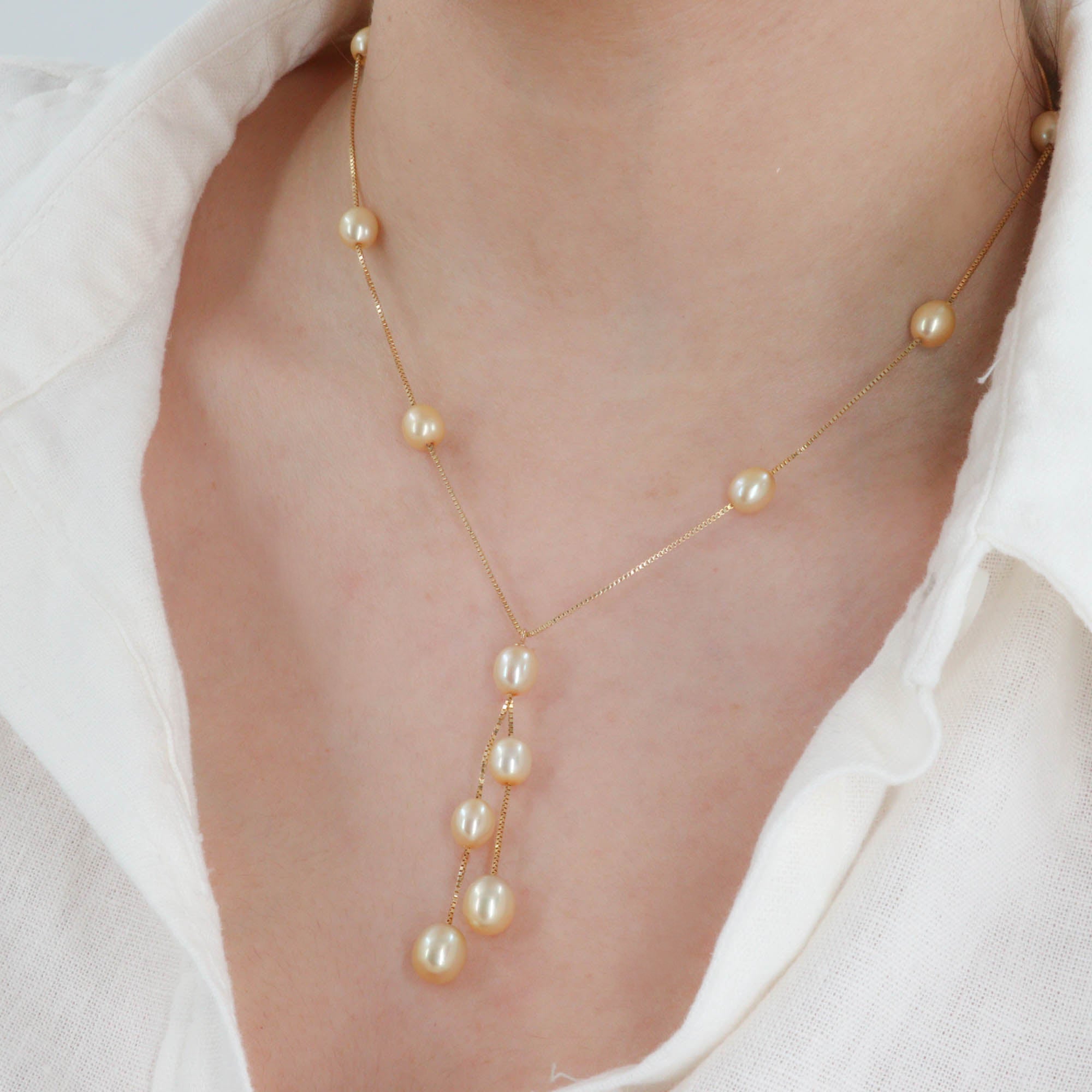 14K Yellow Gold Champagne Pearl Box Chain "Y" Station Necklace