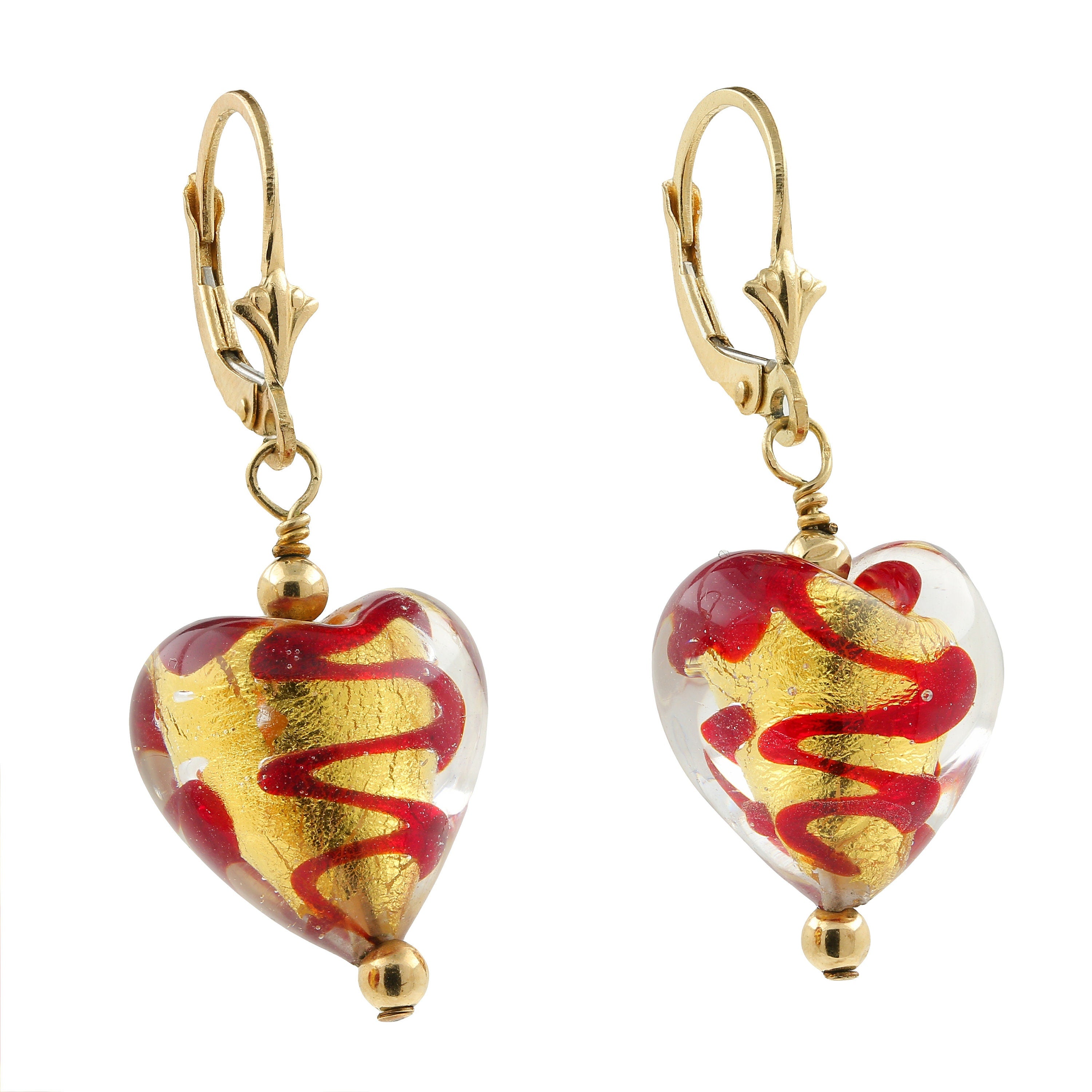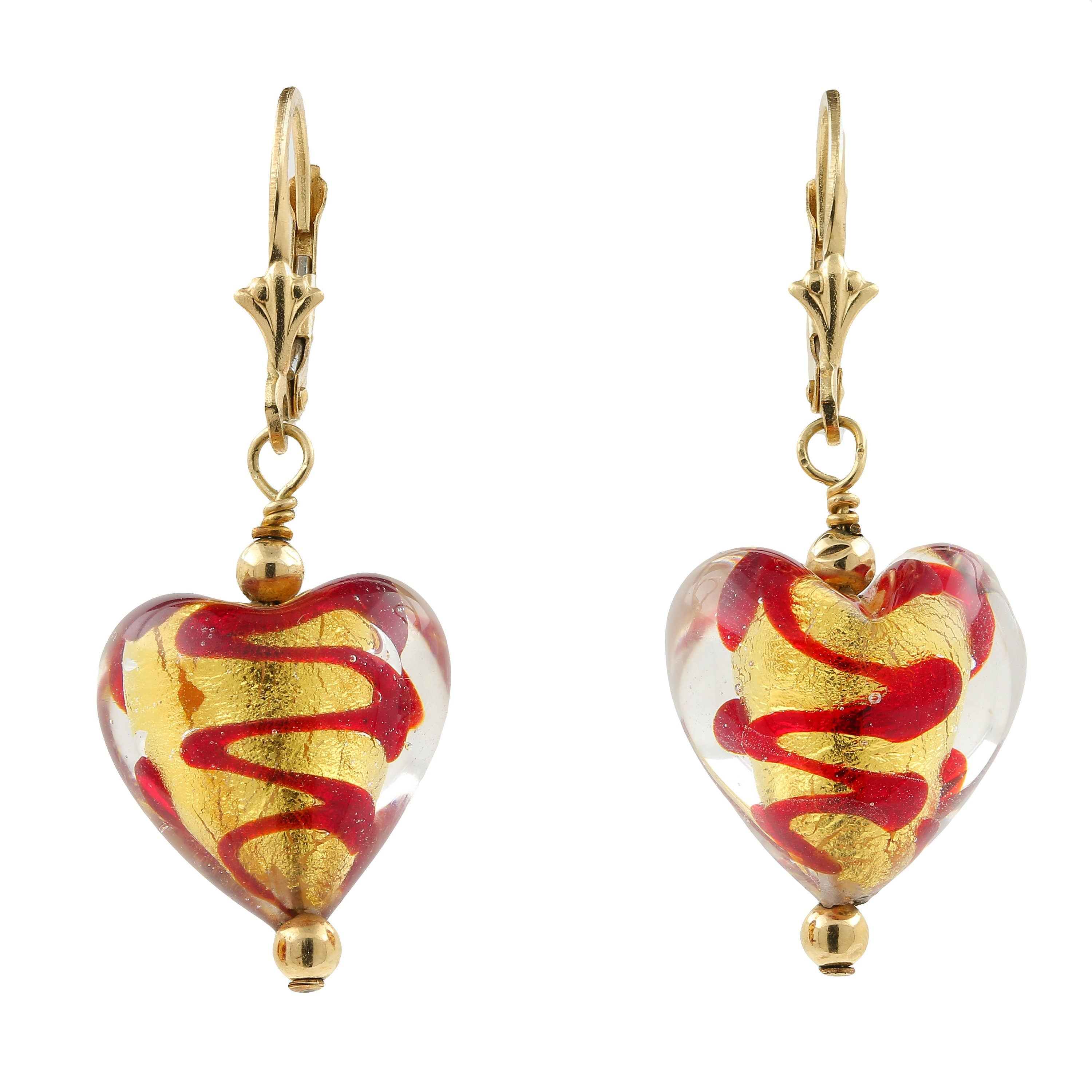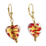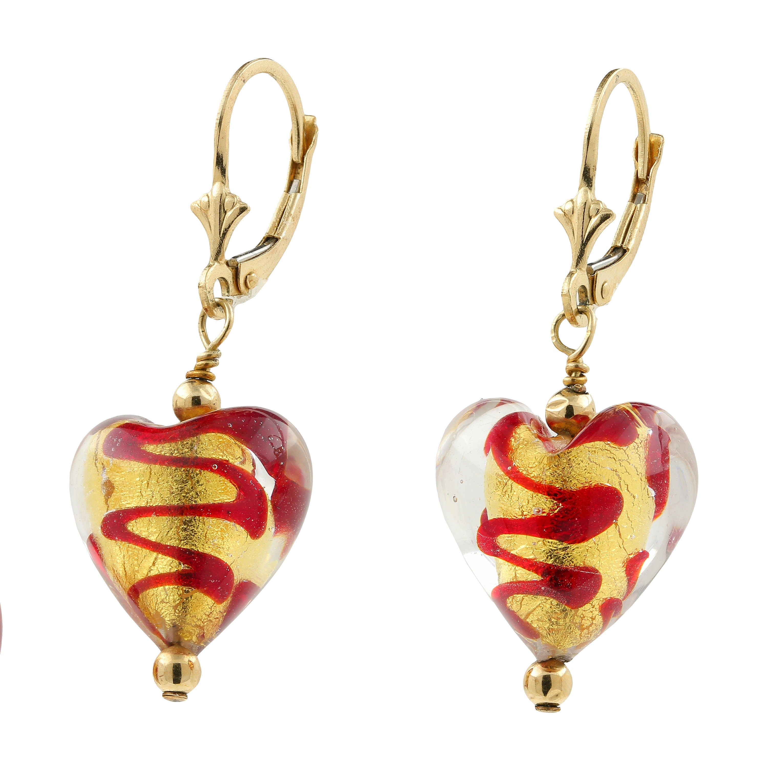 Lovely is this ladies heart pendant and earrings. The earrings feature plastic hearts that are accented by red enamel and gold foil. Secured by french backs these earrings compliment a pendant that can be incorporated to any chain of your liking.