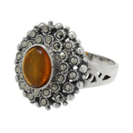 925 Sterling Silver Orange Amber & Marcasite Ring
