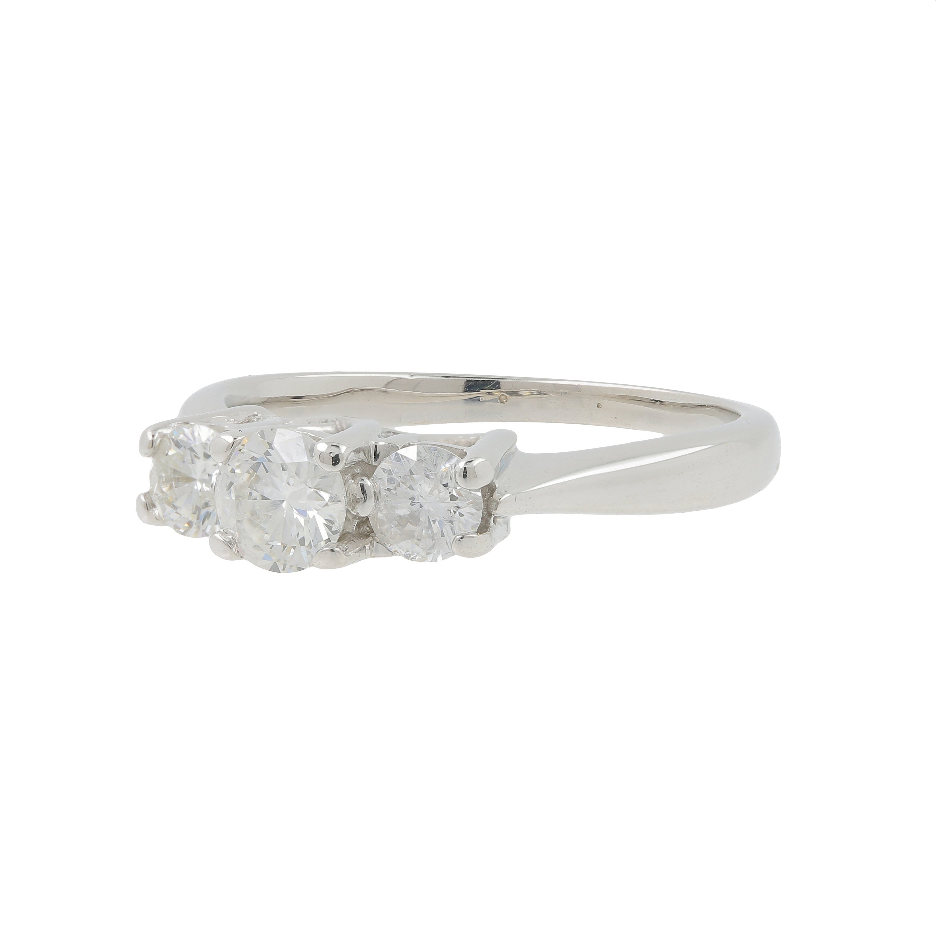 Ladies Modern 14K White Gold Three Stone Anniversary Diamond Ring EGL - 0.80CTW