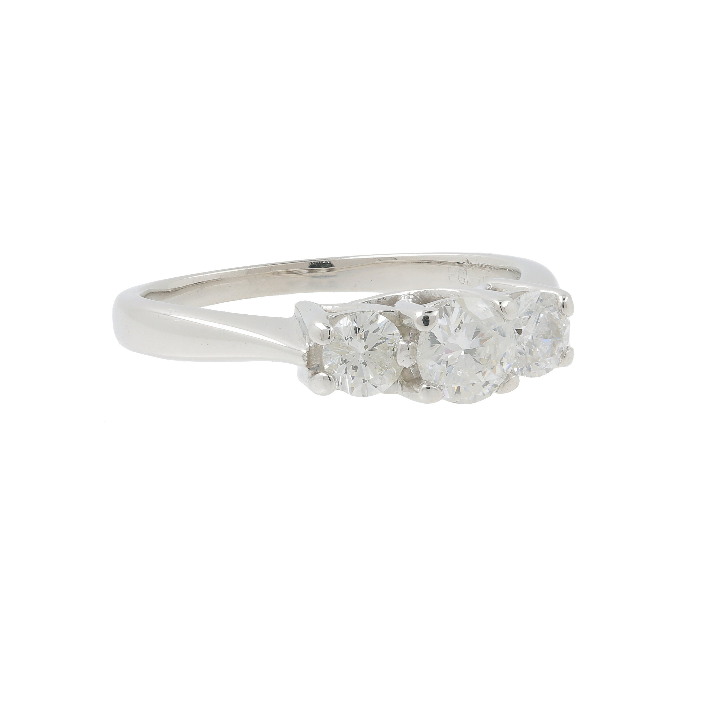 Exquisitely crafted in solid 14 karat white gold this ladies diamond engagement ring features three EGL certified brilliant round cut prong set diamonds. With a total carat weight of 0.80CTW this ladies diamond ring is sure to draw admiration.