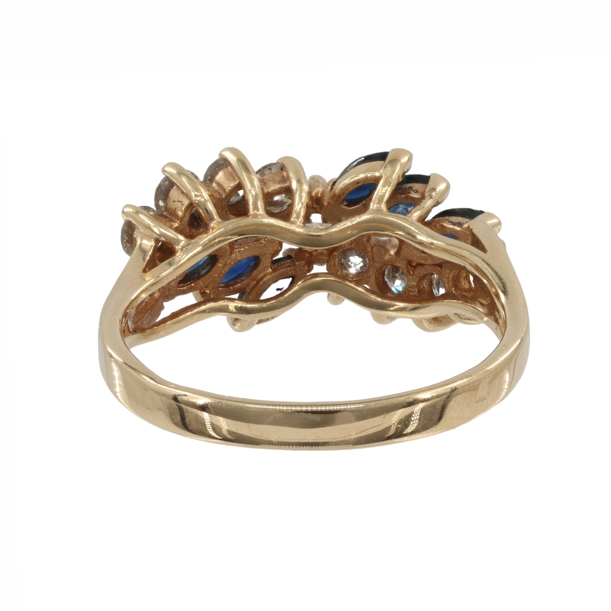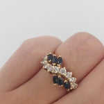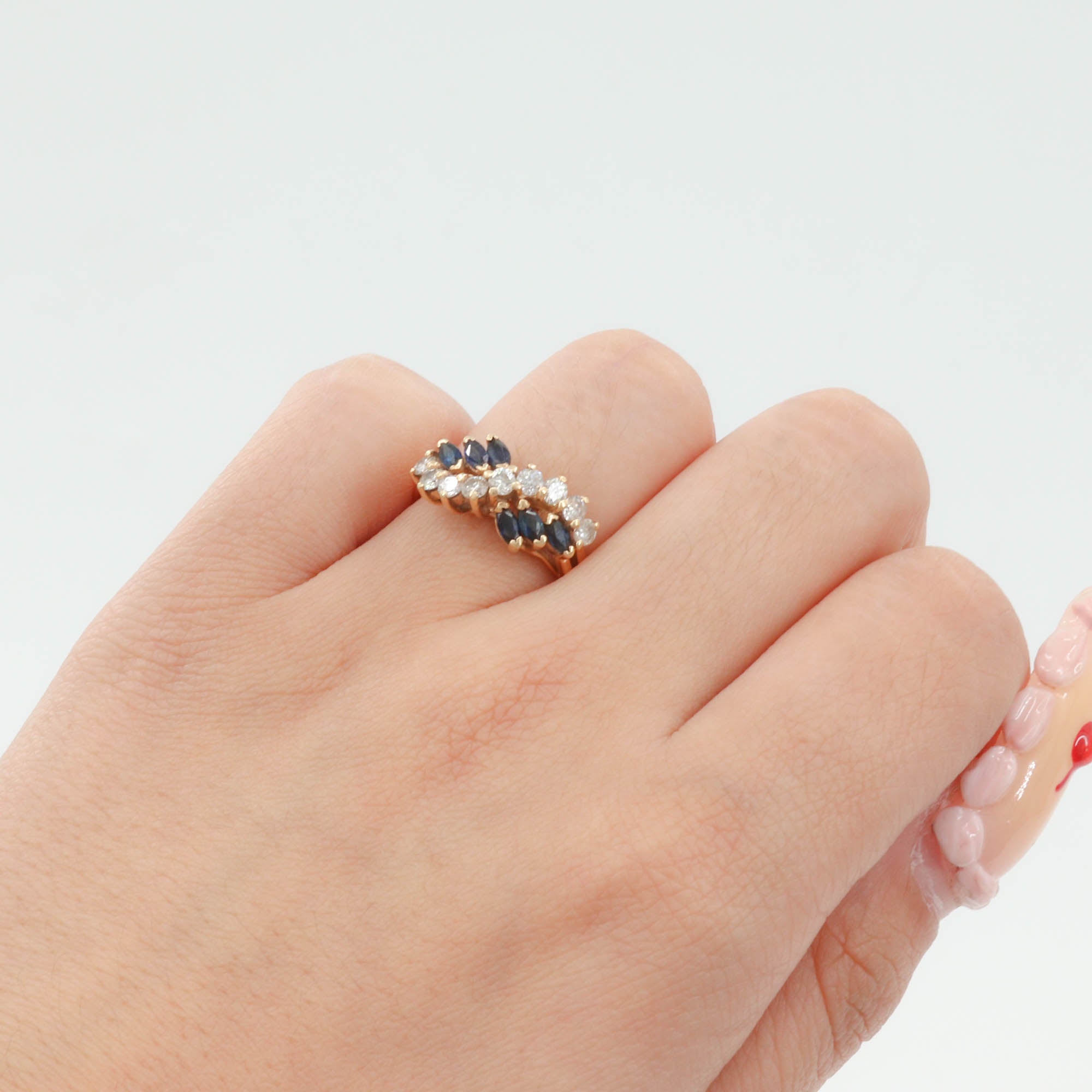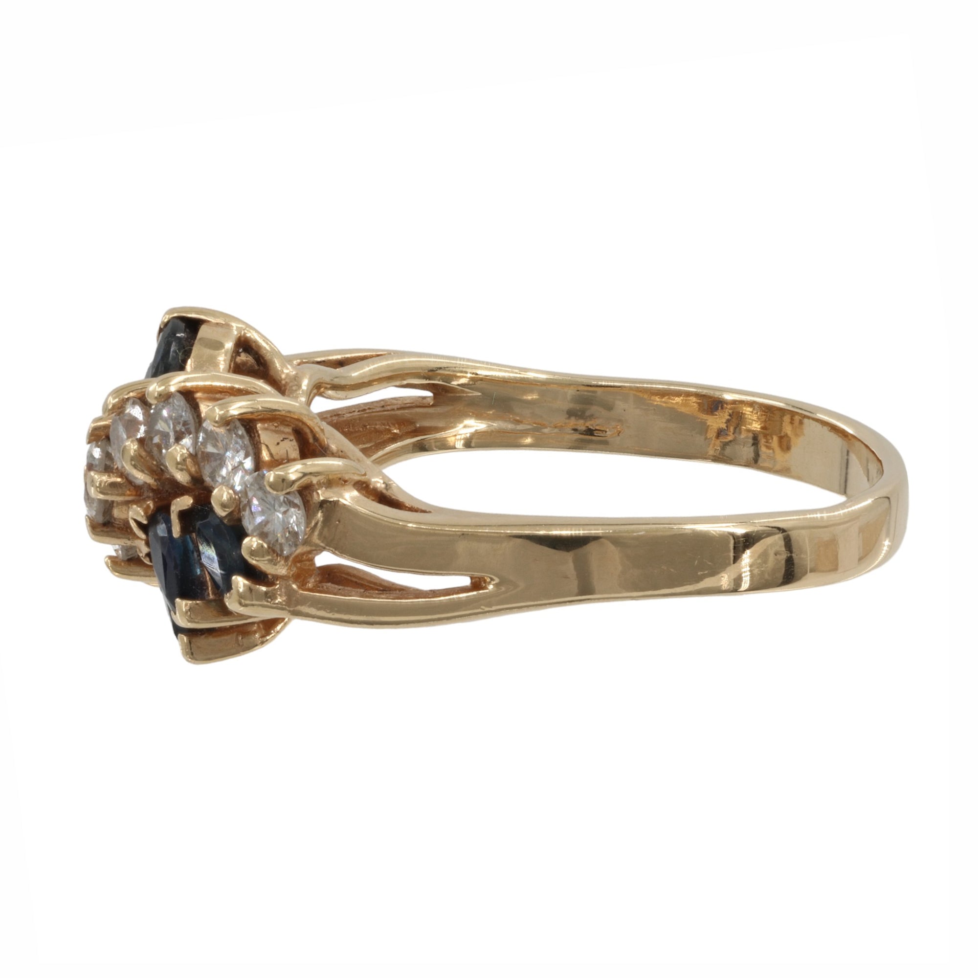 Fabulous Blue Sapphires and sparkling Round Brilliant White diamonds make up this beautiful vintage right hand ring! The ring is fabricated in solid 14-karat yellow gold and contains an astounding 1.10ctw.