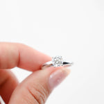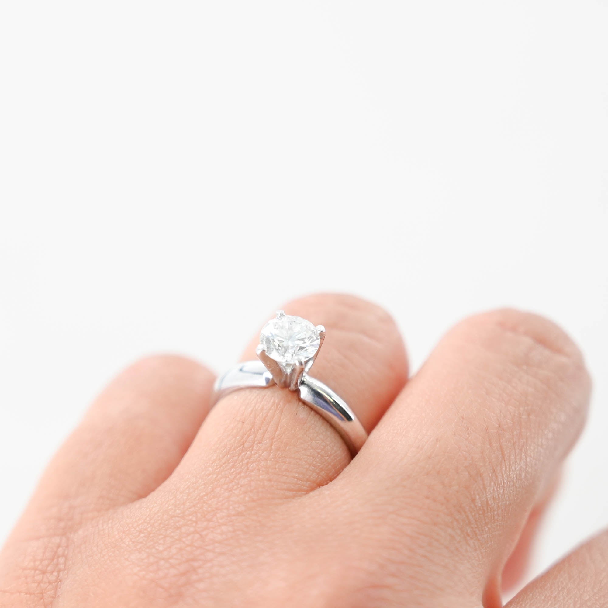Our Platinum Diamond Solitaire Engagement Ring, featuring a stunning 1.00 carat diamond held securely by classic 4-prong setting, is a timeless symbol of commitment and beauty. Perfect for marking your special moment or as a cherished heirloom-to-be.
