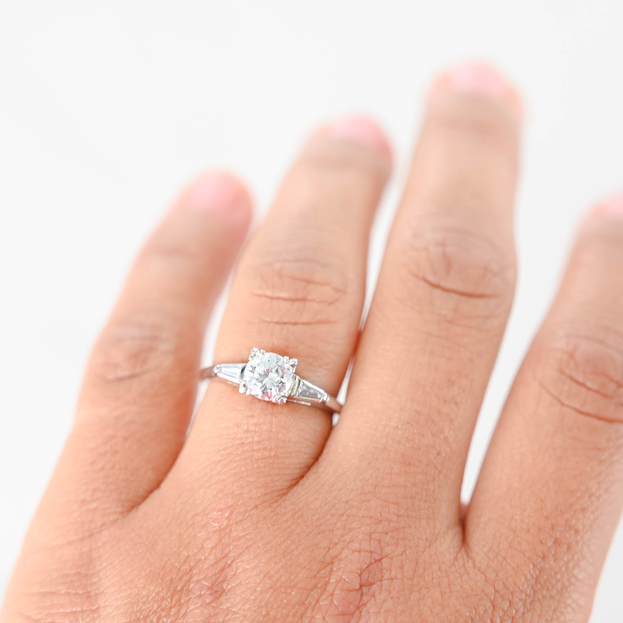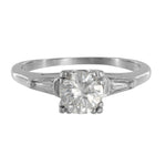 Platinum Diamond Solitaire With Baguettes Accents Engagement Ring 0.96Ctw