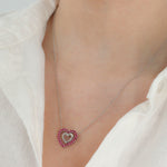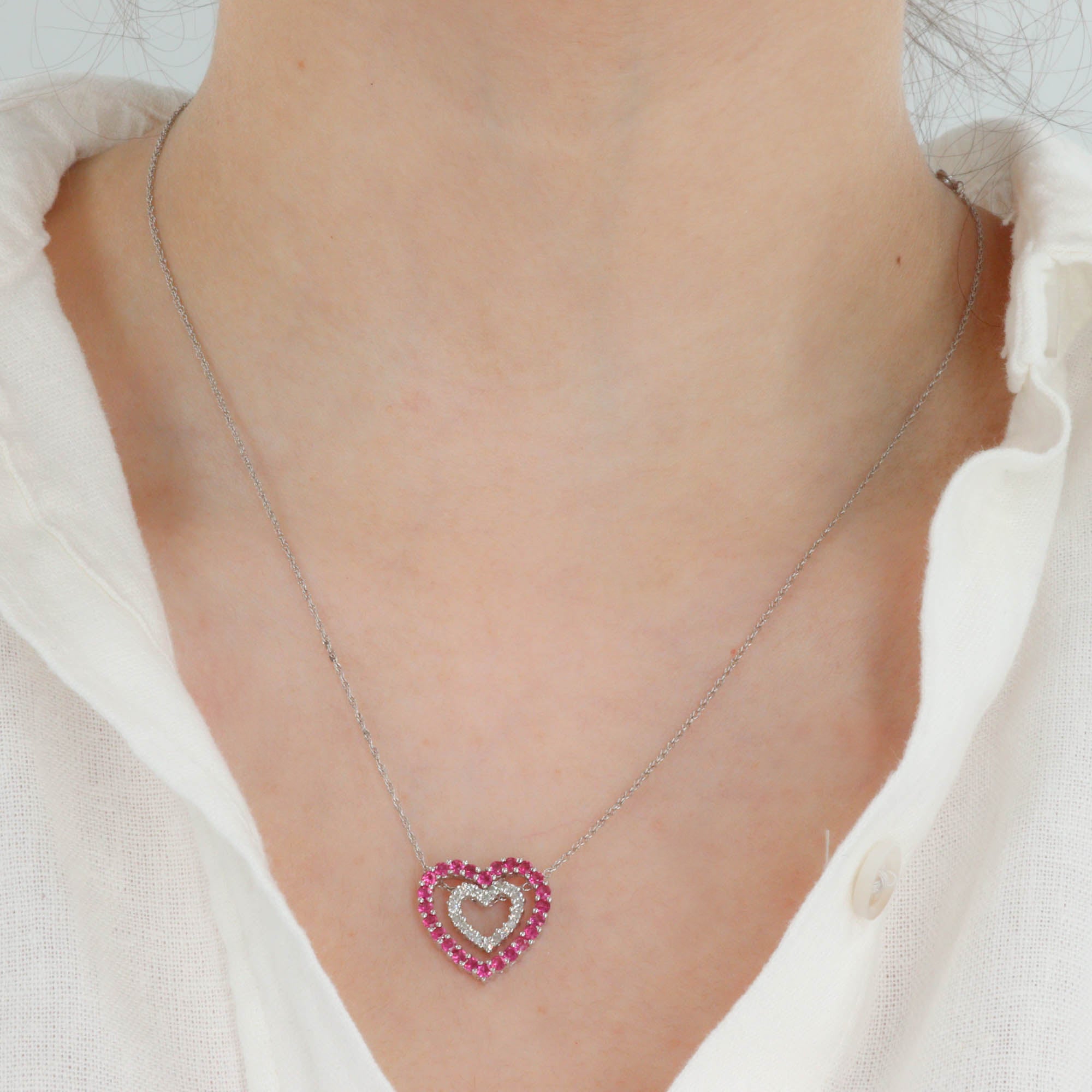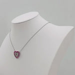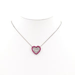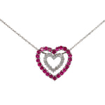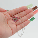 Vintage 14k White Gold Pink Topaz & Round Diamond Dual Heart Charm Necklace
