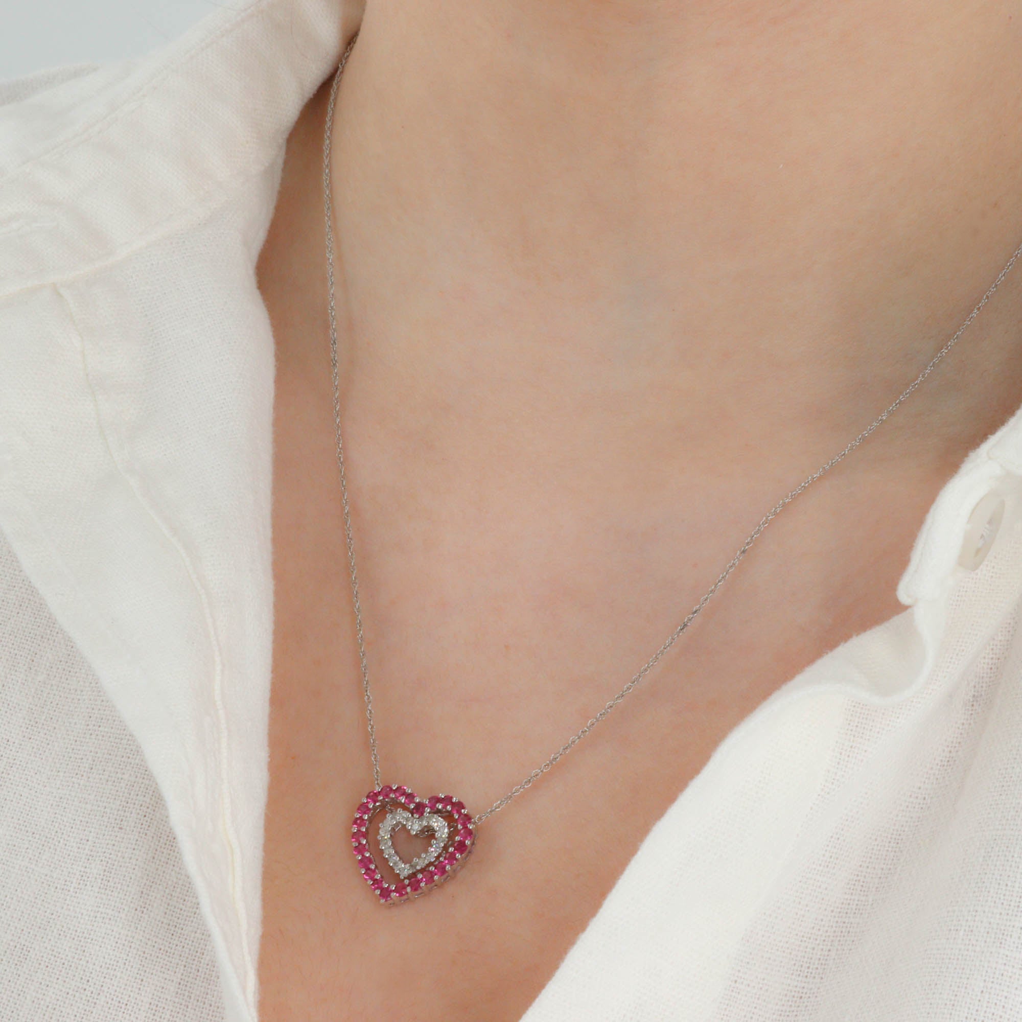 14k White Gold Heart Charm Diamond And Topaz Necklace