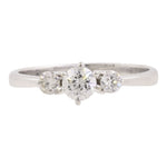This enchanting piece features a trio of brilliant diamonds set in a cluster, creating a stunning focal point. Crafted in lustrous white gold, this ring is a perfect choice for engagements or anniversaries, symbolizing your past, present, and future together.