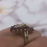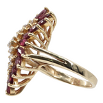 Vintage Estate Ladies 14k Yellow Gold Ruby and Diamond Cocktail Cluster Ring