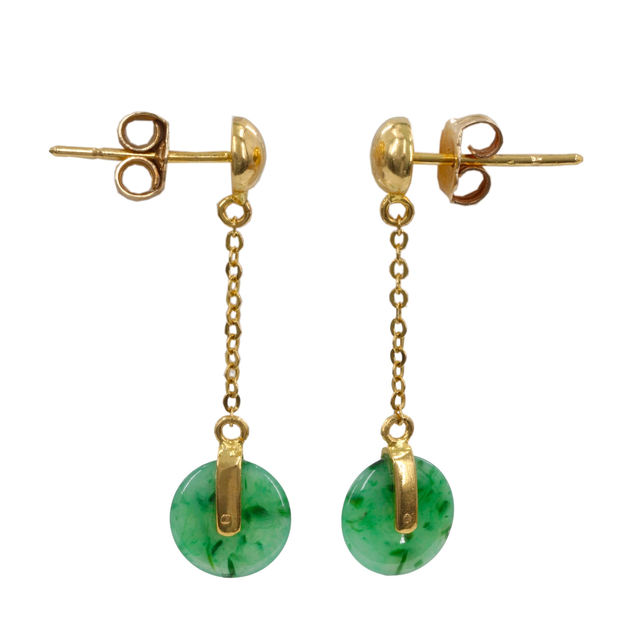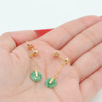 14K Yellow Gold Synthetic Jade Drop Earrings