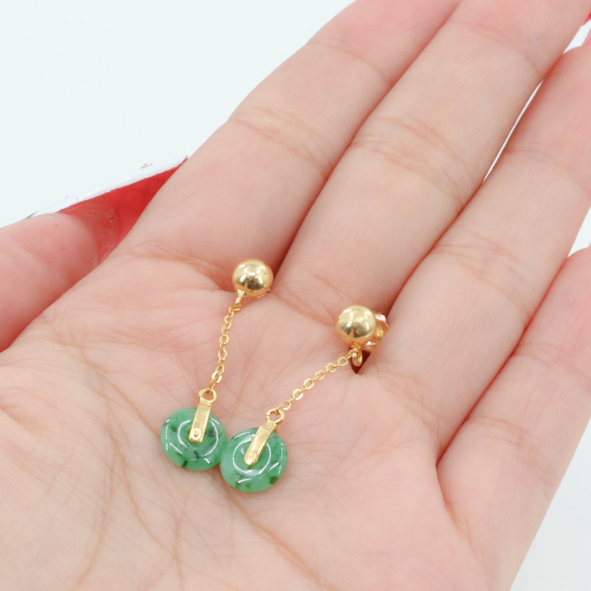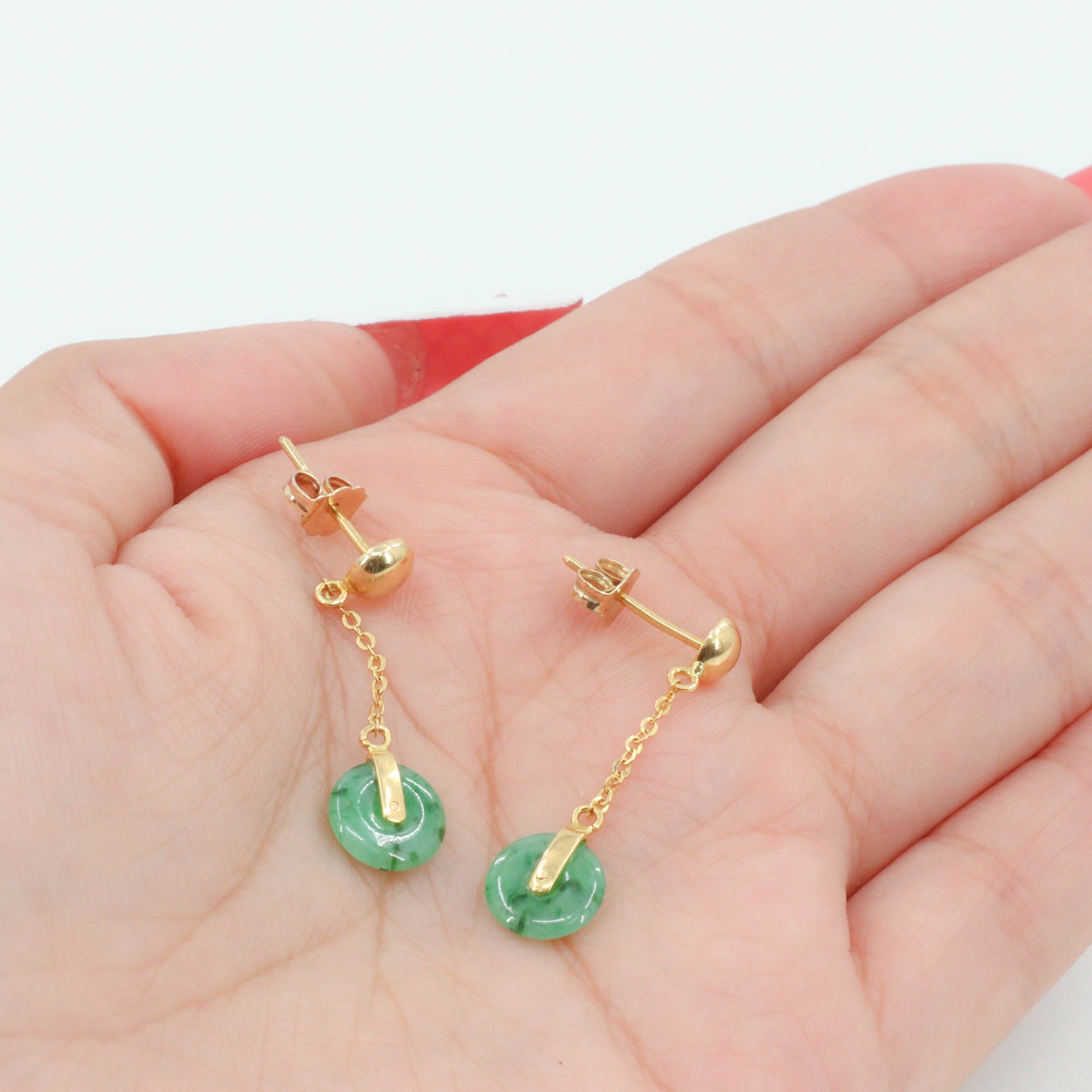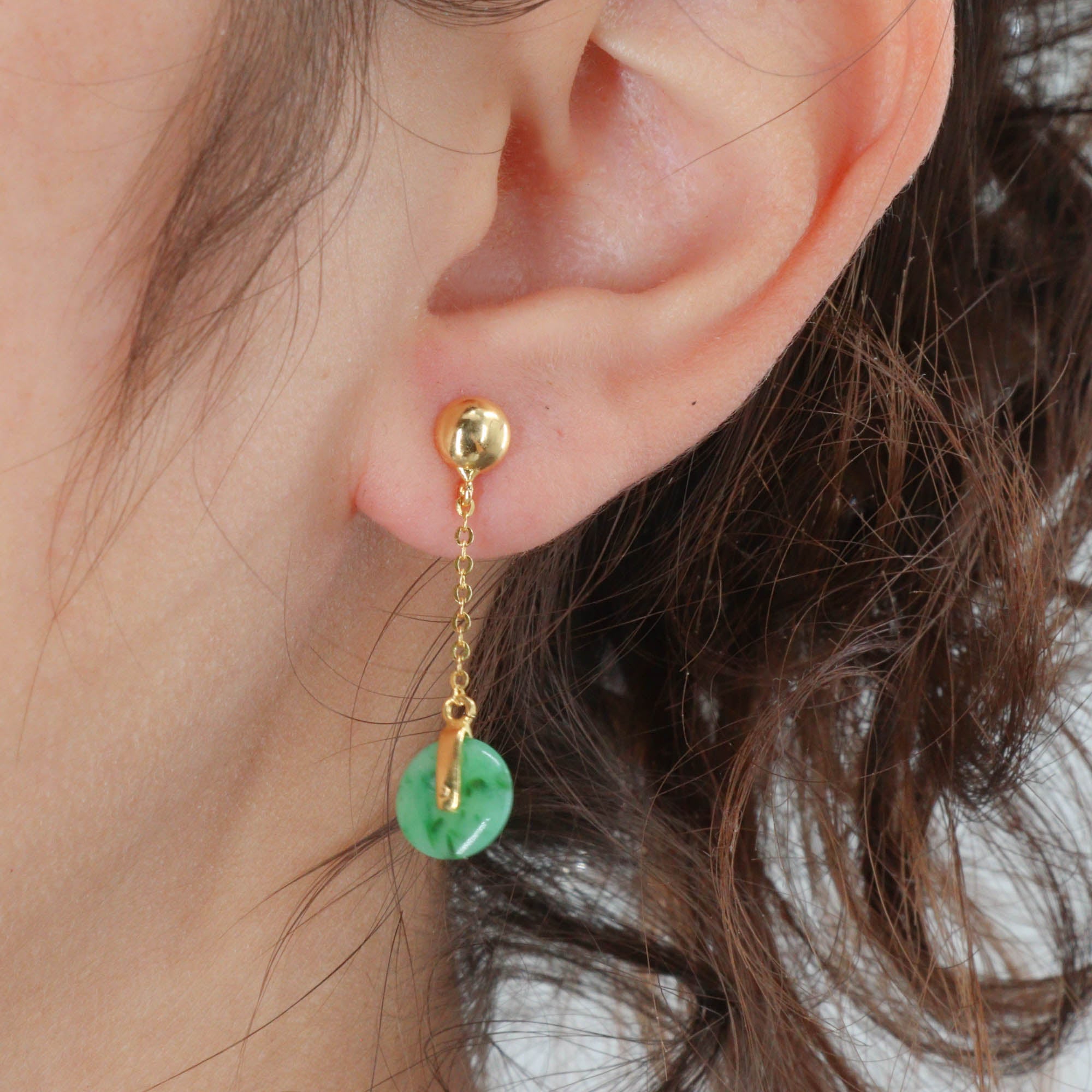 Discover the perfect blend of luxury and elegance with these 14K yellow gold synthetic jade earrings. With a length of 1.3 inches and a width of 8.83mm, these earrings are crafted from high-quality 14K gold and weigh 2.9 grams. The vibrant synthetic jade stones are beautifully complemented by the warm gold, while the pushback closure ensures secure and comfortable wear. These earrings are an ideal choice for those who appreciate refined, classic style.