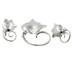 Sterling Silver 925 Tulip Flower Earring Brooch Jewelry Set