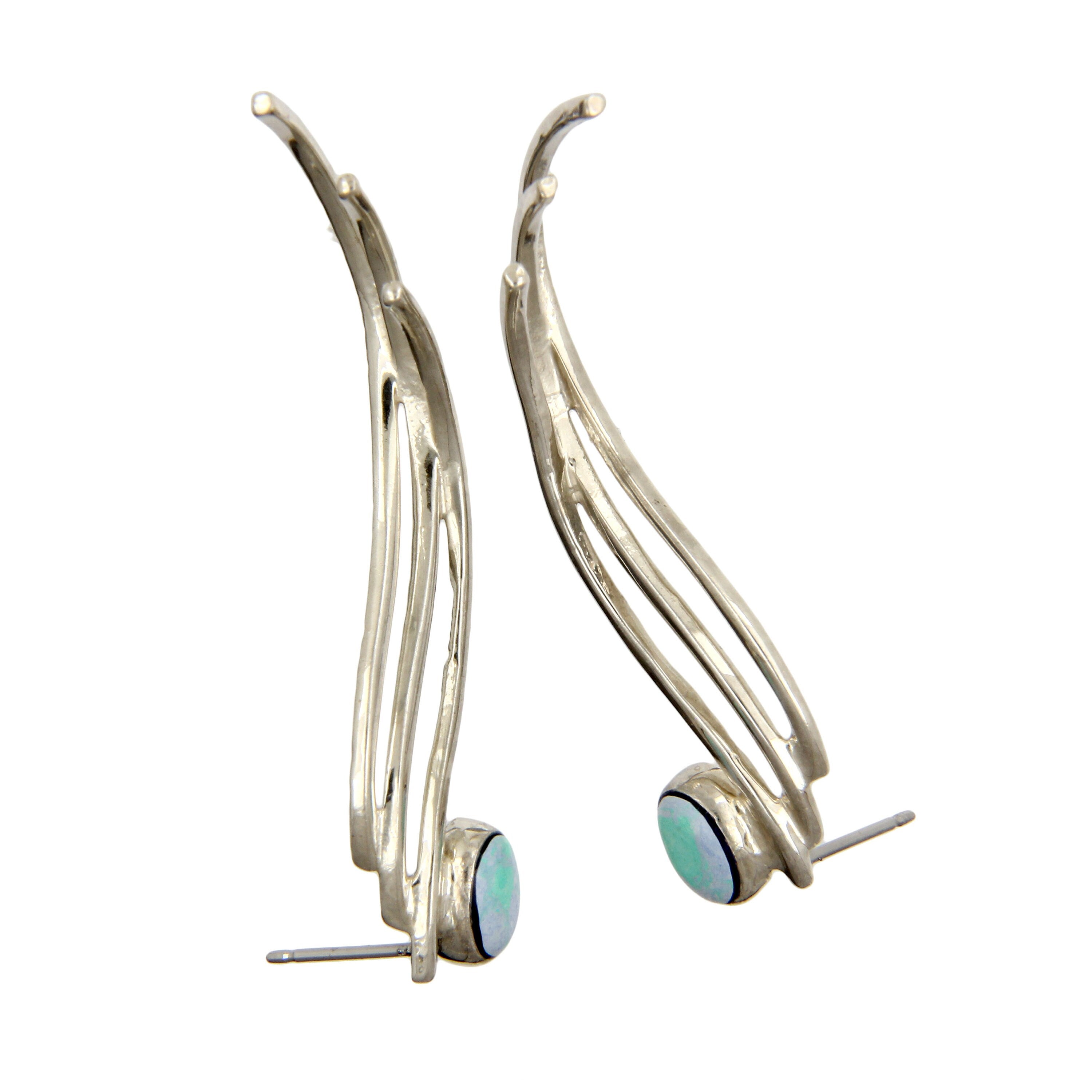 Beautiful sterling silver vintage cuff bangle bracelet with a feather flat smooth design will sure captivate attention all around. Cuff bangle measures 5.5 inches and displays a cabochon mixed color gemstone. Finish the look with 2 inch matching earrings. Comes in a complimentary box.